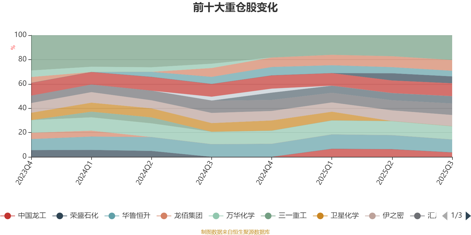 该基金持股集中度较高,近2年前十大重仓股集中度长期超过60%。截至2025年三季度末,基金十大重仓股分别是万华化学、桐昆股份、华鲁恒升、汇川技术、伊之密、安徽合力、中联重科、新奥能源、恒力石化、中国龙工。