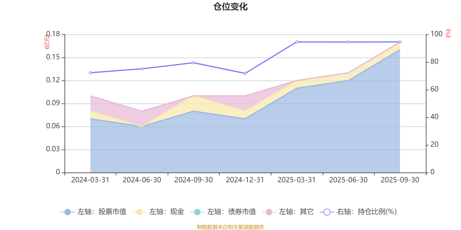 据定期报告数据统计,成立以来平均股票仓位为83.24%,同类平均为83.73%。2025年三季度末基金达到94.65%的最高仓位,2024年末最低,为71.84%。