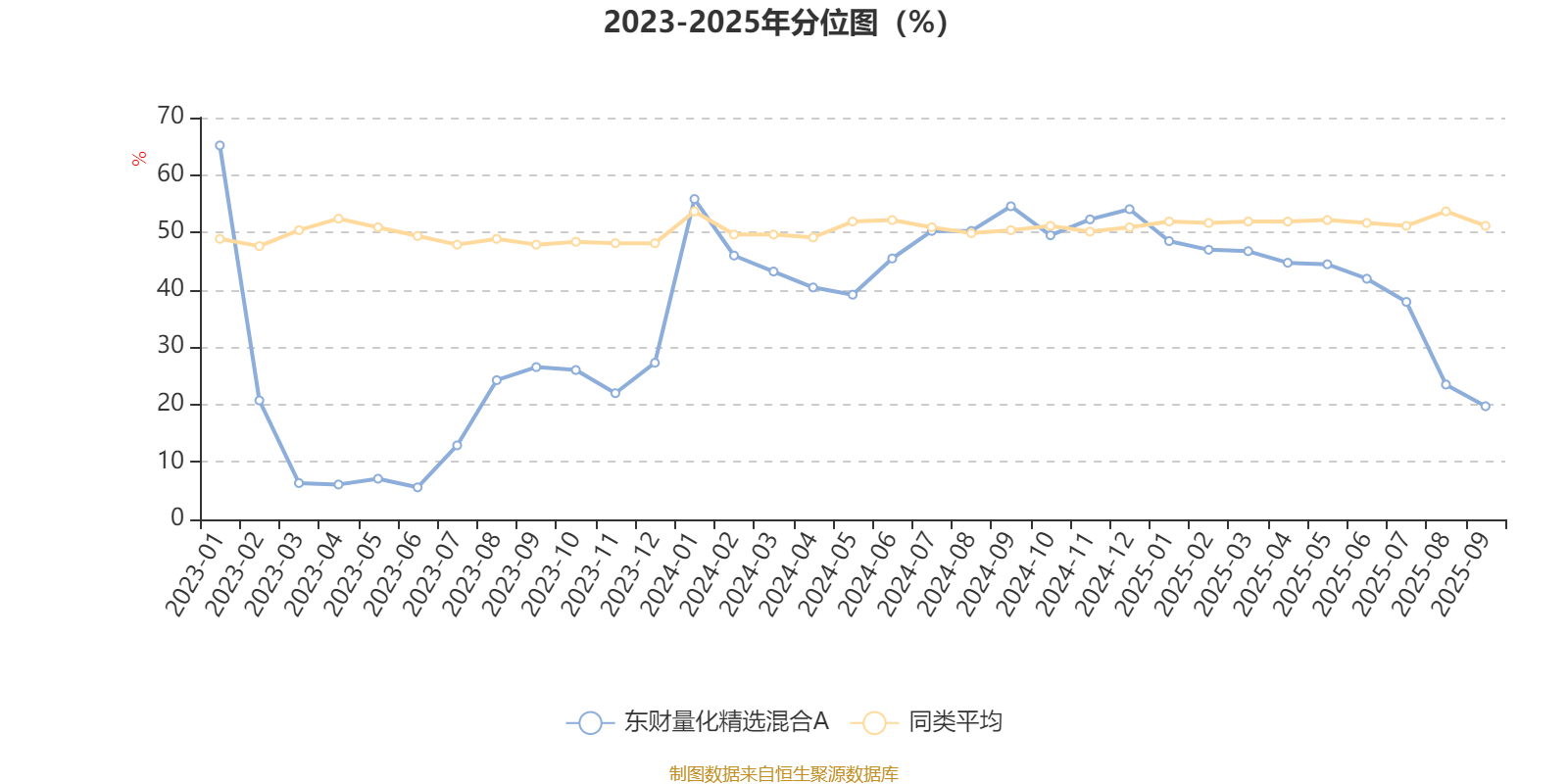 通过所选区间该基金净值增长率分位图,可以观察该基金与同类基金业绩比较情况。图为坐标原点到区间内某时点的净值增长率在同类基金中的分位数。