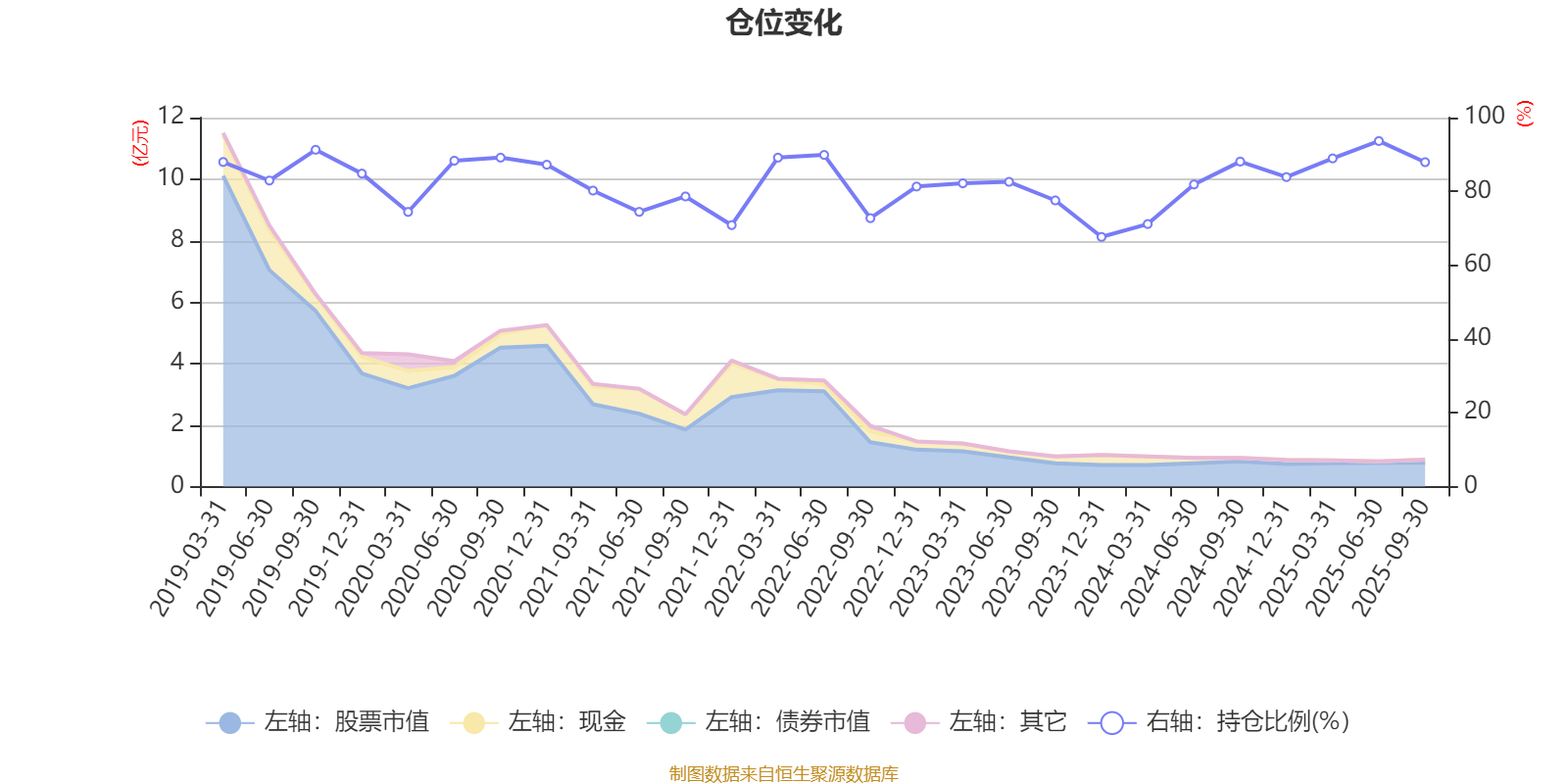 据定期报告数据统计,近三年平均股票仓位为82.24%,同类平均为83.73%。2025年上半年末基金达到93.65%的最高仓位,2023年末最低,为67.66%。