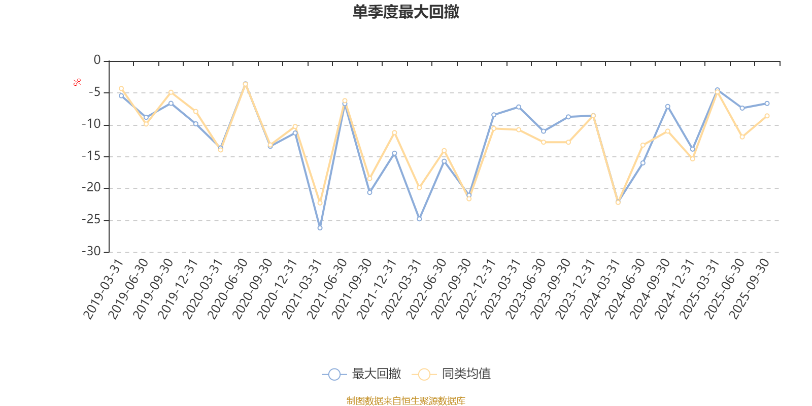 通过所选区间该基金净值增长率分位图,可以观察该基金与同类基金业绩比较情况。图为坐标原点到区间内某时点的净值增长率在同类基金中的分位数。