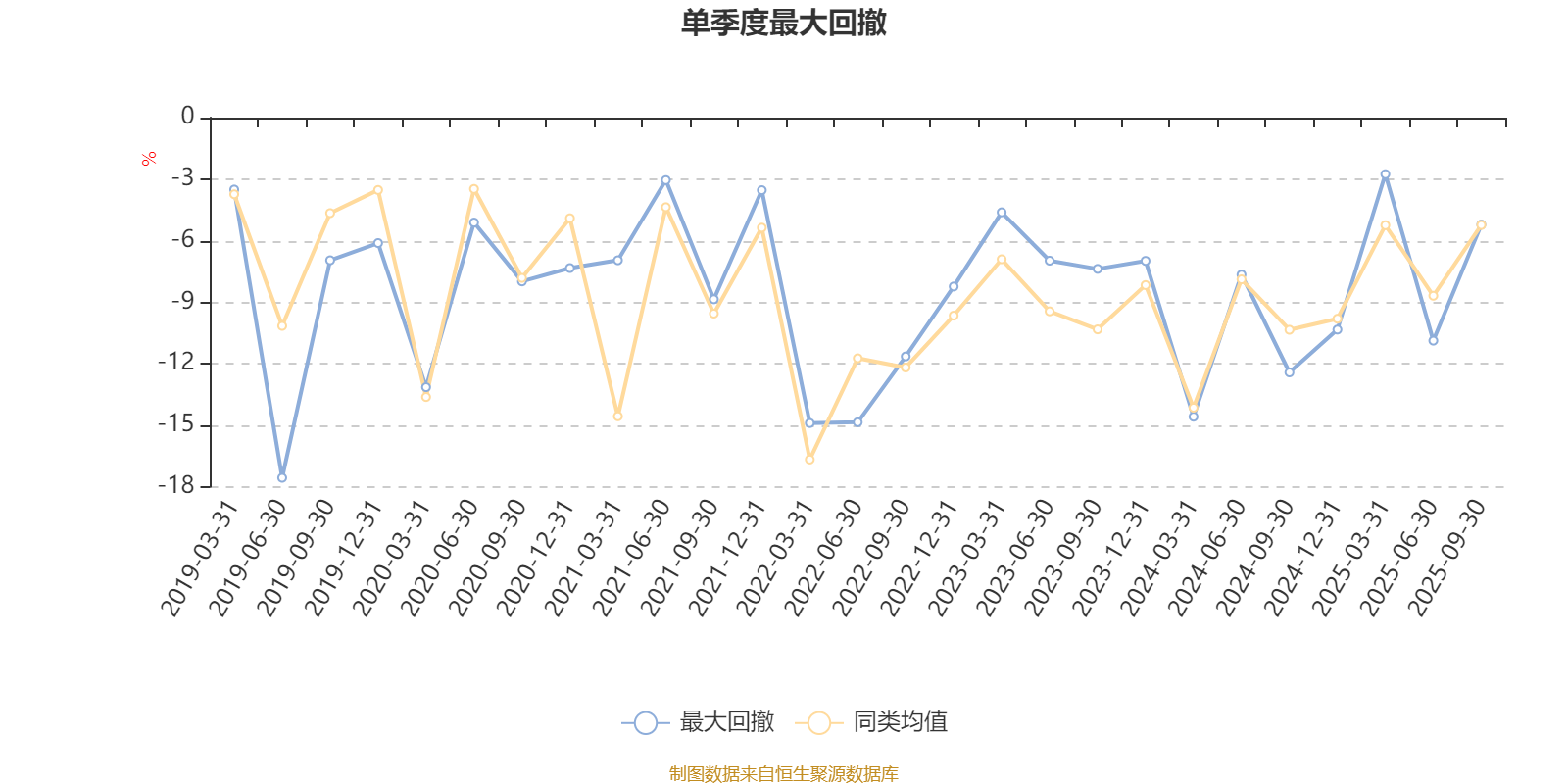 截至10月28日,基金近三年最大回撤为24.77%,同类可比基金排名367/1274。单季度最大回撤出现在2019年二季度,为17.57%。