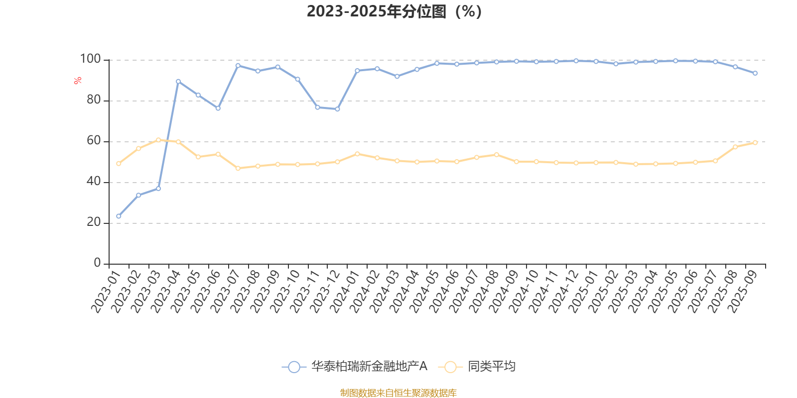 通过所选区间该基金净值增长率分位图,可以观察该基金与同类基金业绩比较情况。图为坐标原点到区间内某时点的净值增长率在同类基金中的分位数。