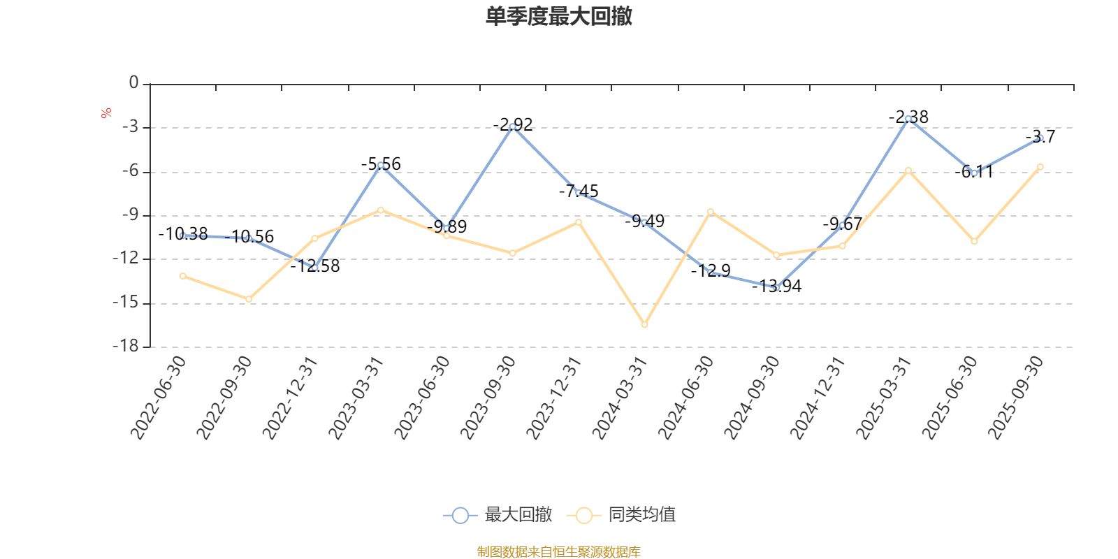 截至10月28日,基金近三年最大回撤为21.93%,同类可比基金排名29/513。单季度最大回撤出现在2024年三季度,为13.94%。