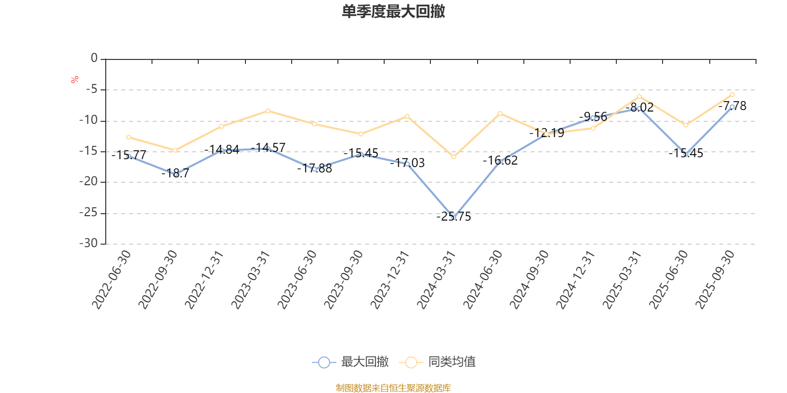 截至10月28日,基金近三年最大回撤为62.64%,同类可比基金排名357/363。单季度最大回撤出现在2024年一季度,为25.75%。