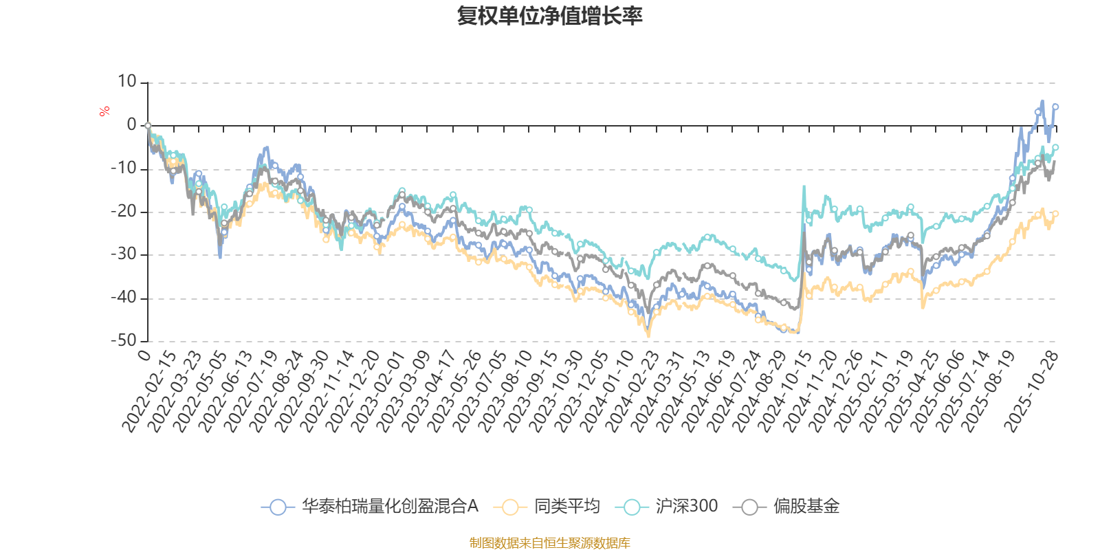 截至10月28日,华泰柏瑞量化创盈混合A近三个月复权单位净值增长率为30.15%,位于同类可比基金75/689;近半年复权单位净值增长率为55.25%,位于同类可比基金59/688;近一年复权单位净值增长率为47.84%,位于同类可比基金90/653;近三年复权单位净值增长率为40.72%,位于同类可比基金56/364。