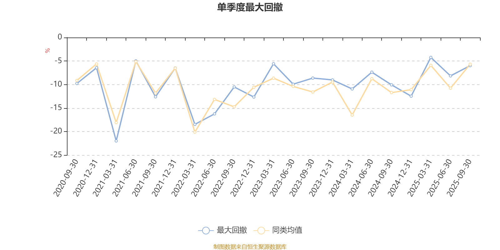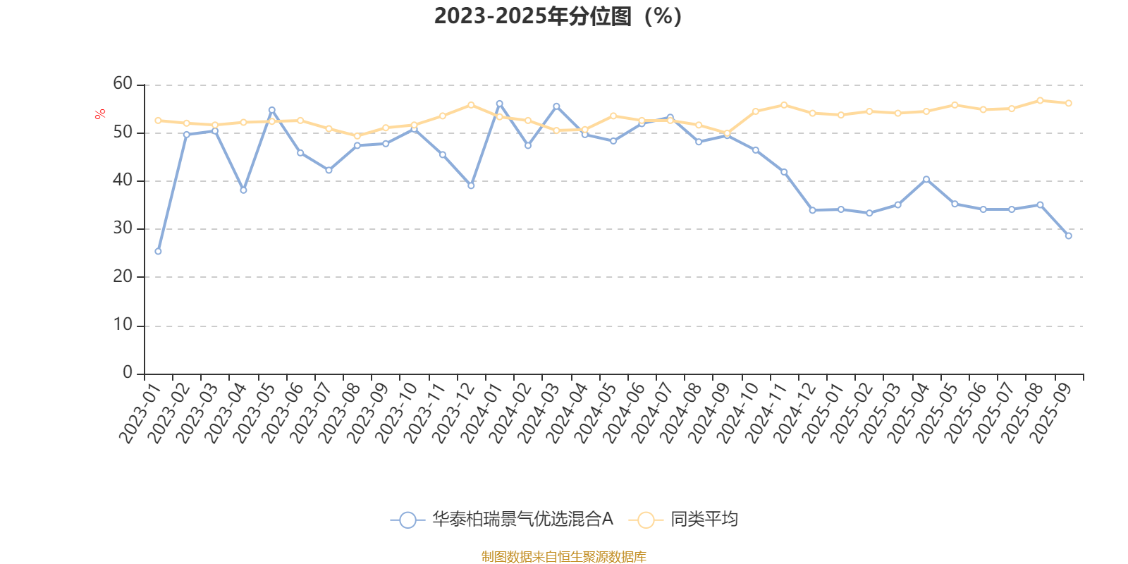 通过所选区间该基金净值增长率分位图,可以观察该基金与同类基金业绩比较情况。图为坐标原点到区间内某时点的净值增长率在同类基金中的分位数。