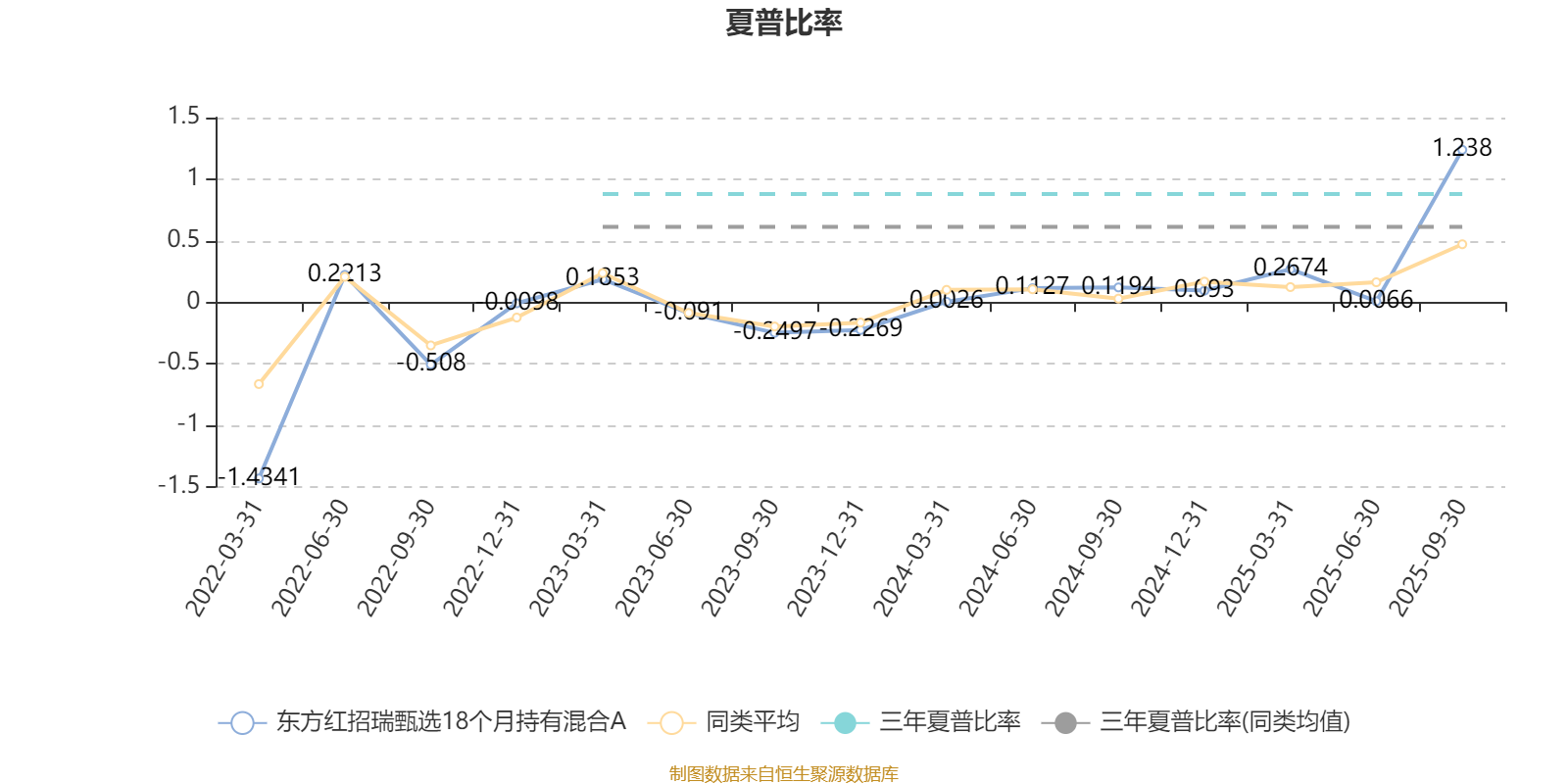 截至9月30日,基金近三年夏普比率为0.8784,位于同类可比基金135/553。
