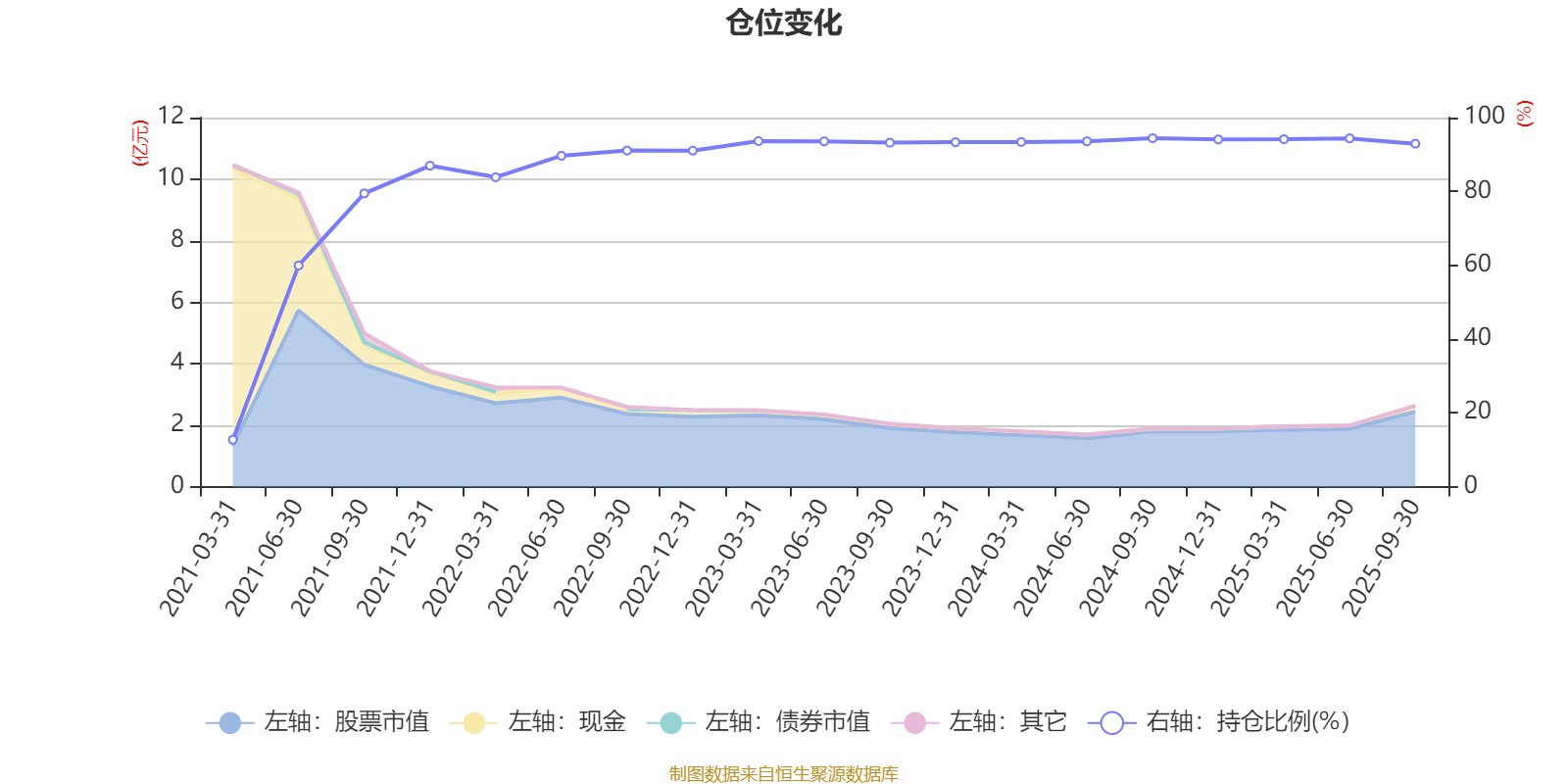 据定期报告数据统计,近三年平均股票仓位为93.47%,同类平均为85.66%。2024年三季度末基金达到94.41%的最高仓位,2021年一季度末最低,为12.7%。
