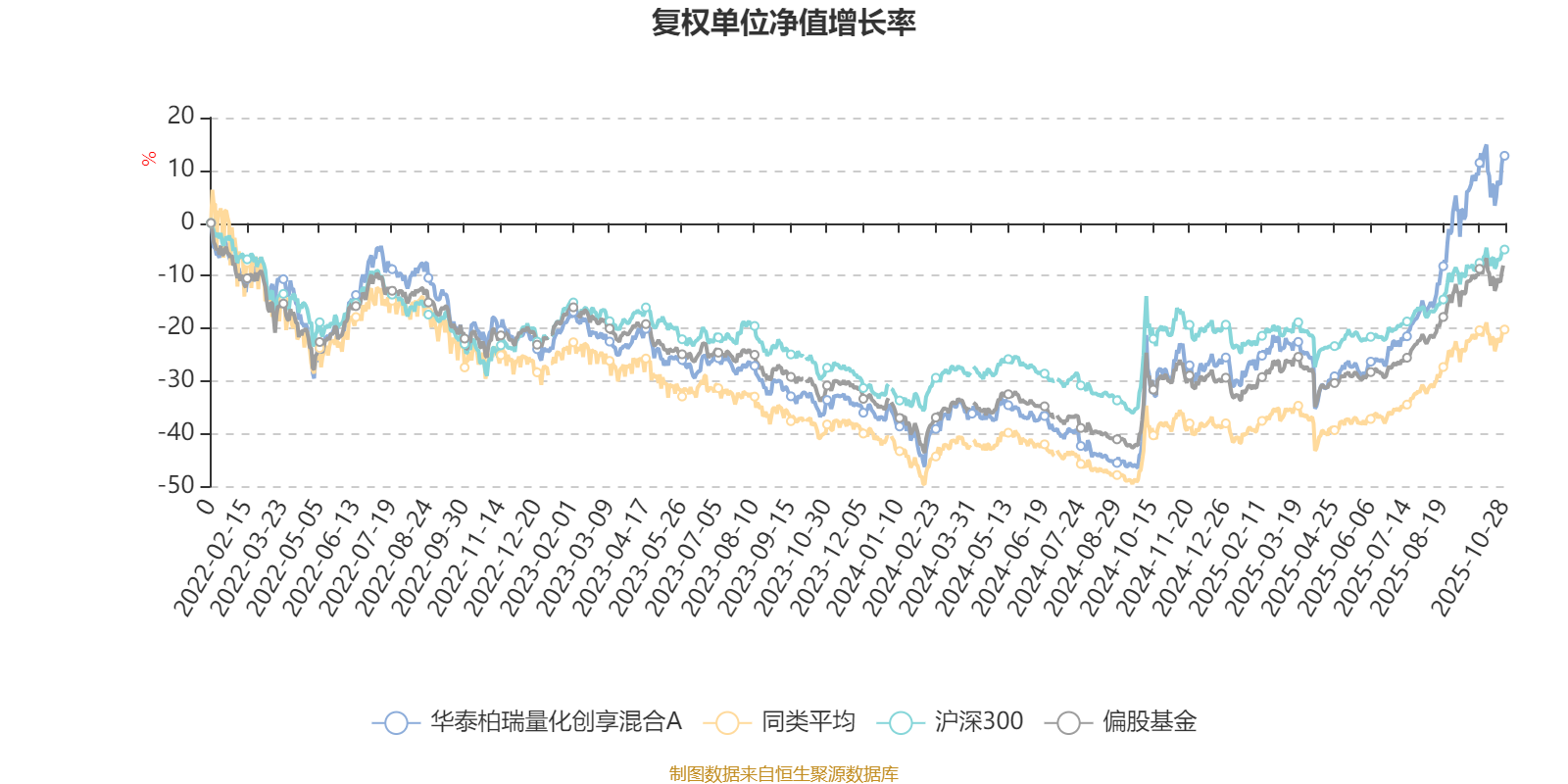 截至10月28日,华泰柏瑞量化创享混合A近三个月复权单位净值增长率为34.36%,位于同类可比基金52/621;近半年复权单位净值增长率为59.88%,位于同类可比基金48/619;近一年复权单位净值增长率为56.27%,位于同类可比基金68/611;近三年复权单位净值增长率为48.37%,位于同类可比基金88/518。