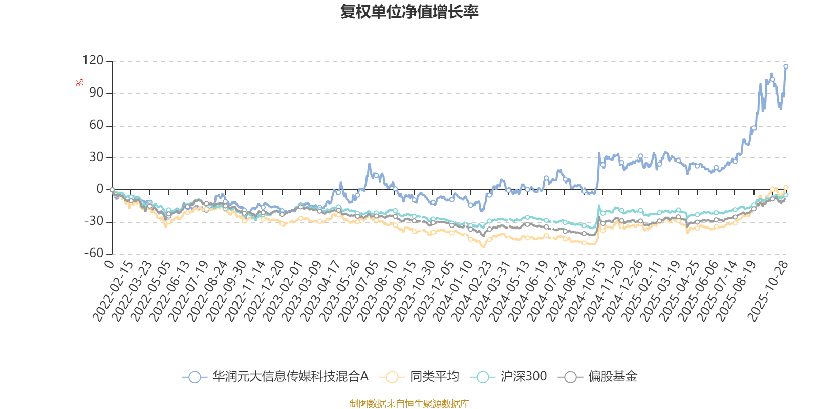 截至10月28日,华润元大信息传媒科技混合A近三个月复权单位净值增长率为52.89%,位于同类可比基金38/229;近半年复权单位净值增长率为75.63%,位于同类可比基金62/229;近一年复权单位净值增长率为66.85%,位于同类可比基金69/213;近三年复权单位净值增长率为163.73%,位于同类可比基金1/158。