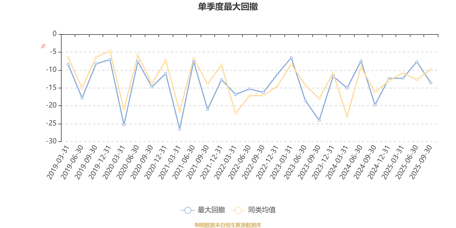 通过所选区间该基金净值增长率分位图,可以观察该基金与同类基金业绩比较情况。图为坐标原点到区间内某时点的净值增长率在同类基金中的分位数。