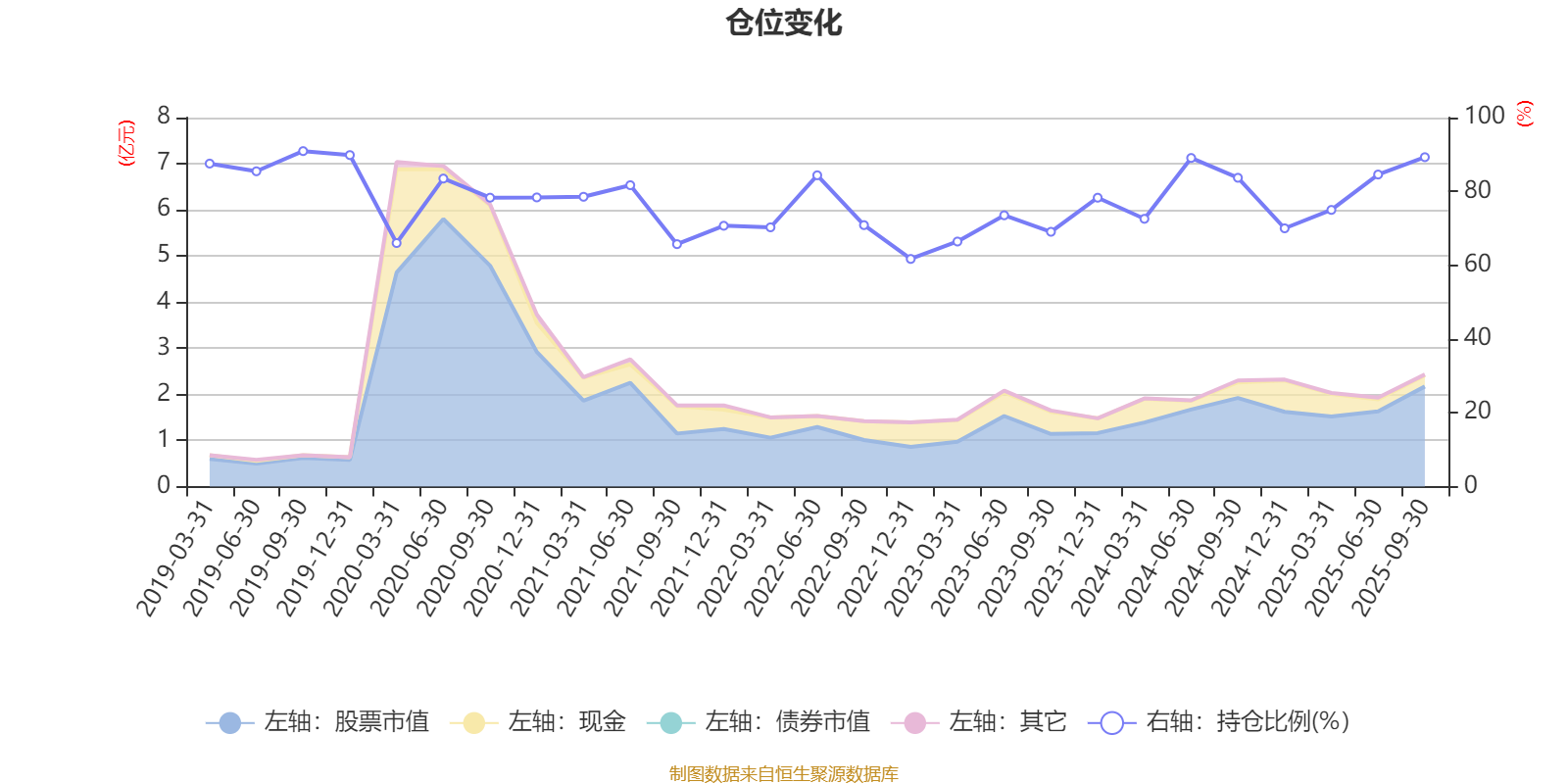 据定期报告数据统计,近三年平均股票仓位为76.09%,同类平均为86.77%。2019年三季度末基金达到90.92%的最高仓位,2022年末最低,为61.69%。