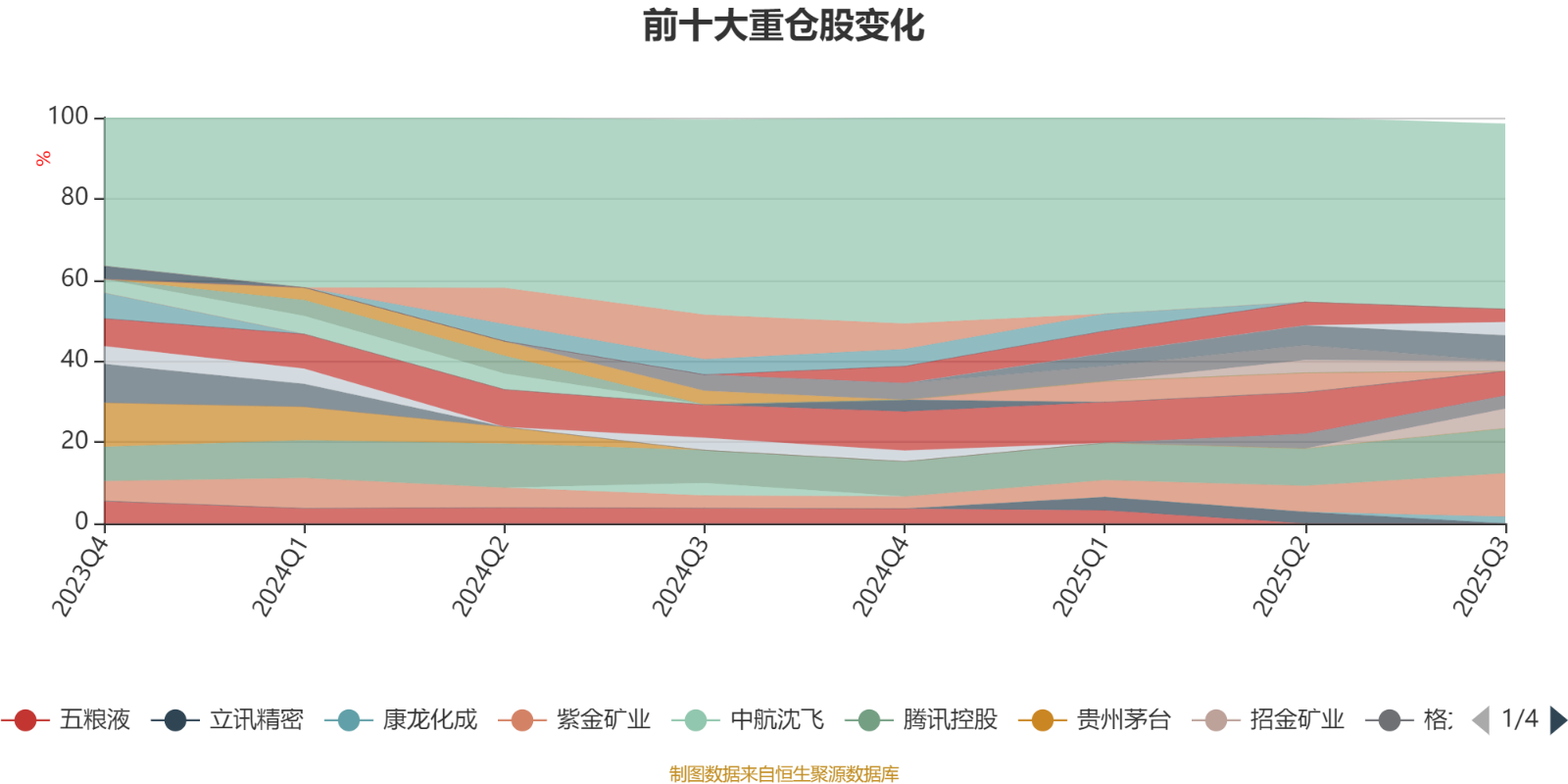截至2025年三季度末,基金十大重仓股分别是腾讯控股、紫金矿业、阿里巴巴-W、招商银行、招金矿业、华鲁恒升、格力电器、宁波银行、信达生物、康龙化成。