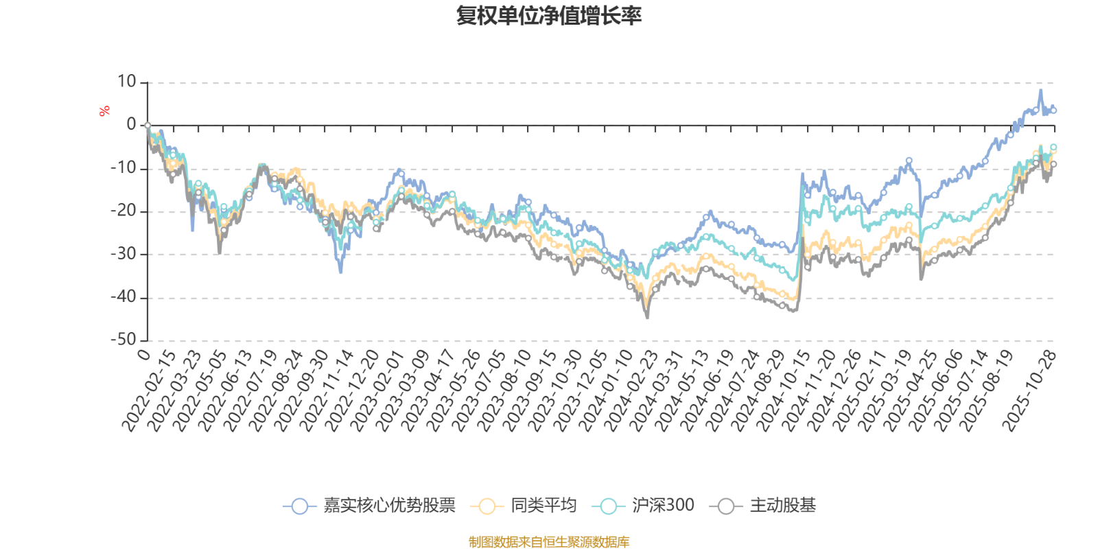 截至10月28日,嘉实核心优势股票近三个月复权单位净值增长率为7.32%,位于同类可比基金139/167;近半年复权单位净值增长率为23.77%,位于同类可比基金113/166;近一年复权单位净值增长率为19.89%,位于同类可比基金121/164;近三年复权单位净值增长率为55.87%,位于同类可比基金26/156。