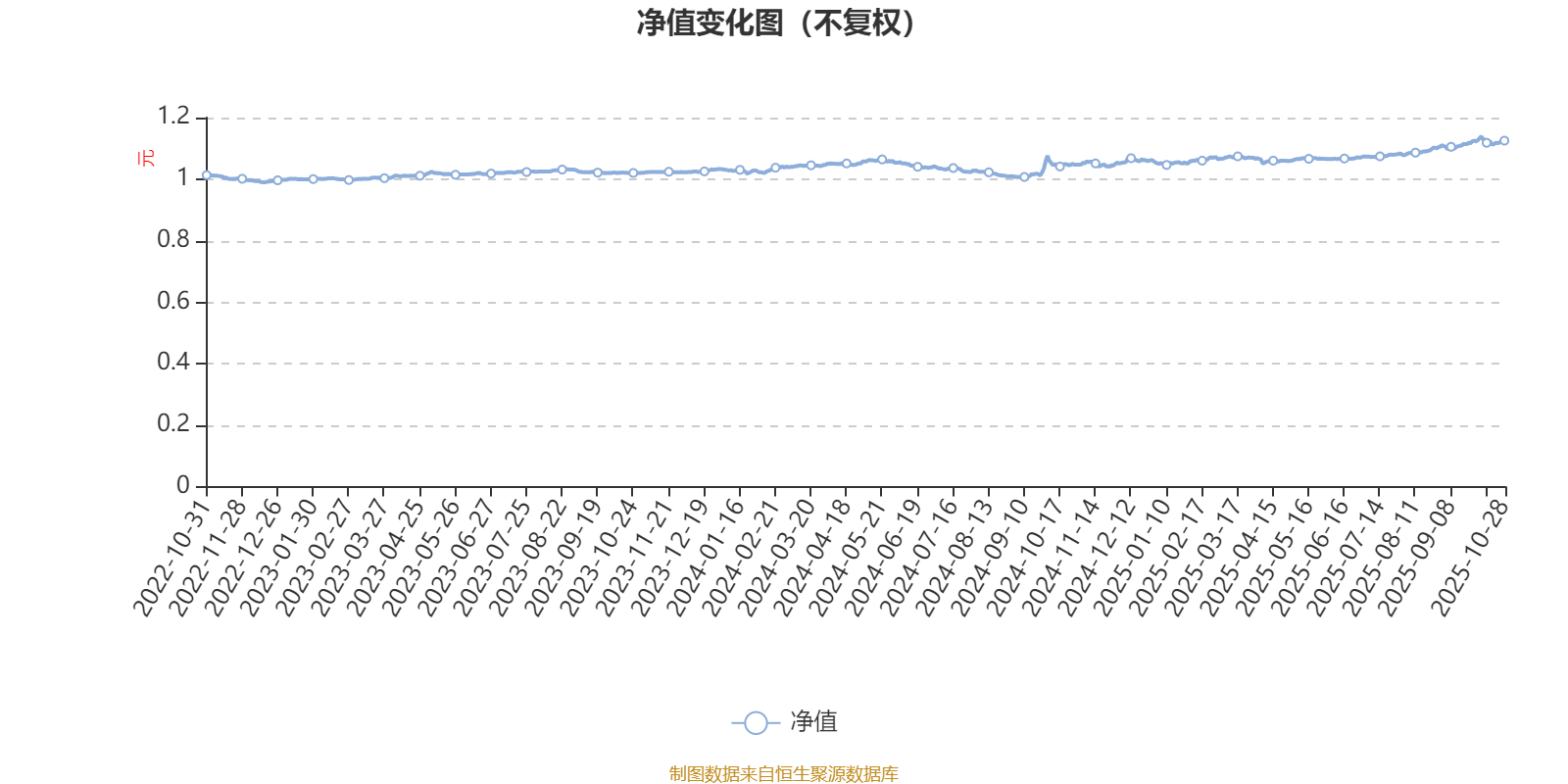 该基金属于偏债混合型基金。截至10月28日,单位净值为1.125元。基金经理是张永志和李卓健。