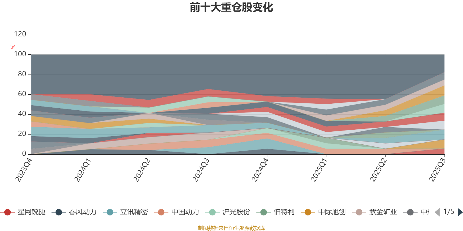 该基金持股集中度较高。截至2025年三季度末,基金十大重仓股分别是新易盛、特宝生物、中际旭创、沪电股份、工业富联、天孚通信、胜宏科技、移远通信、蓝思科技、星网锐捷。