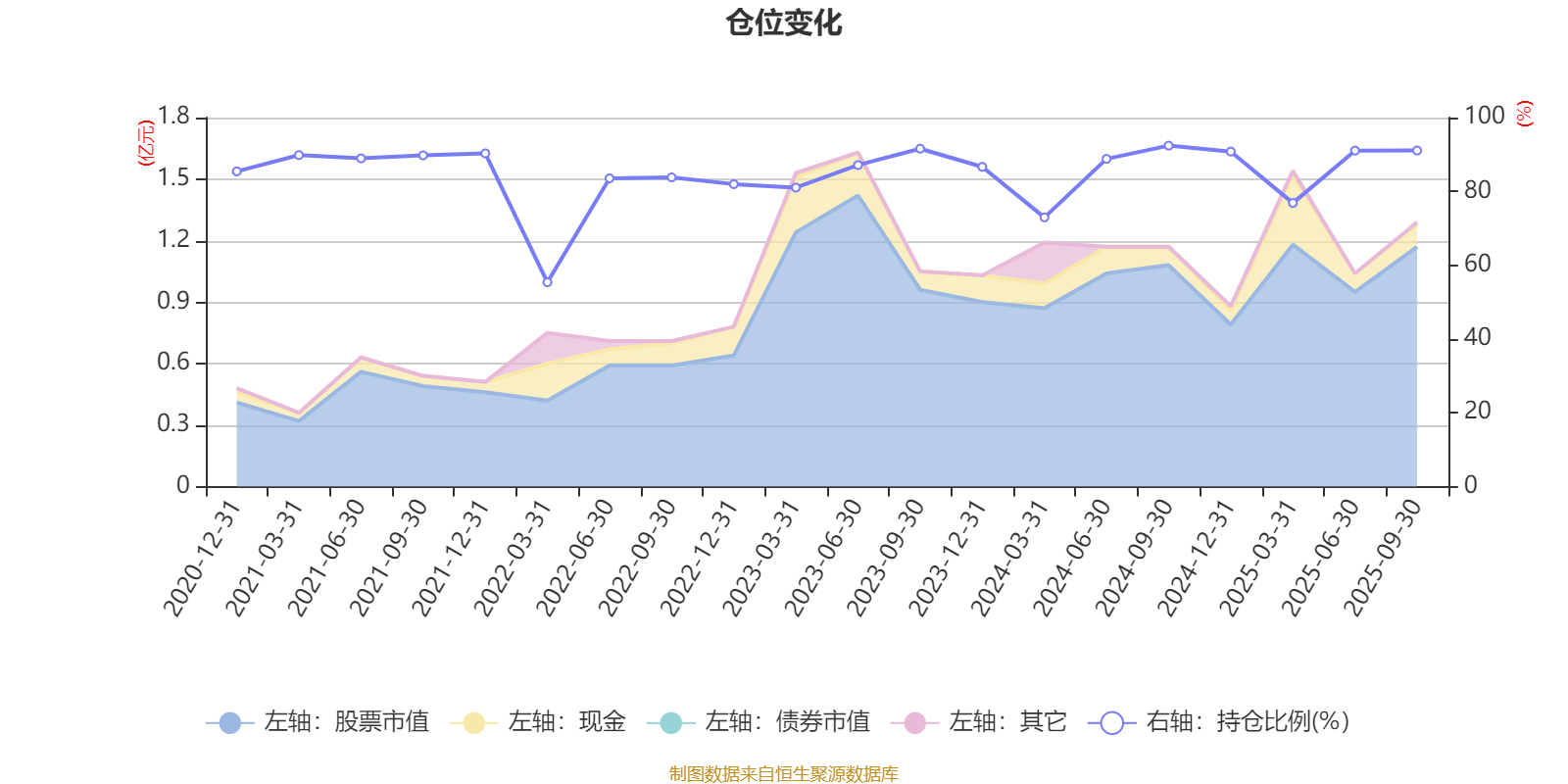 据定期报告数据统计,近三年平均股票仓位为86.03%,同类平均为86.77%。2024年三季度末基金达到92.4%的最高仓位,2022年一季度末最低,为55.37%。