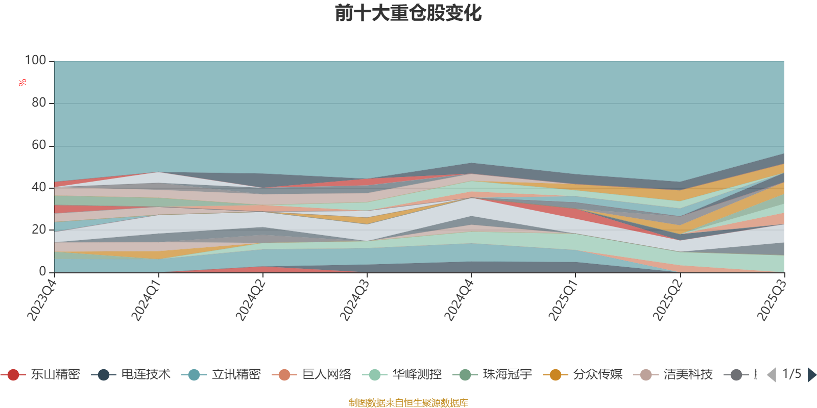 基金管理人在三季报中表示,回顾三季度,我们的组合配置成长股为主,包括泛人工智能产业链、创新药、军工等。我们对国内产业升级的长期前景保持乐观,组合结构上有所调整,减配了海外敞口大的方向,增配了半导体、军工。