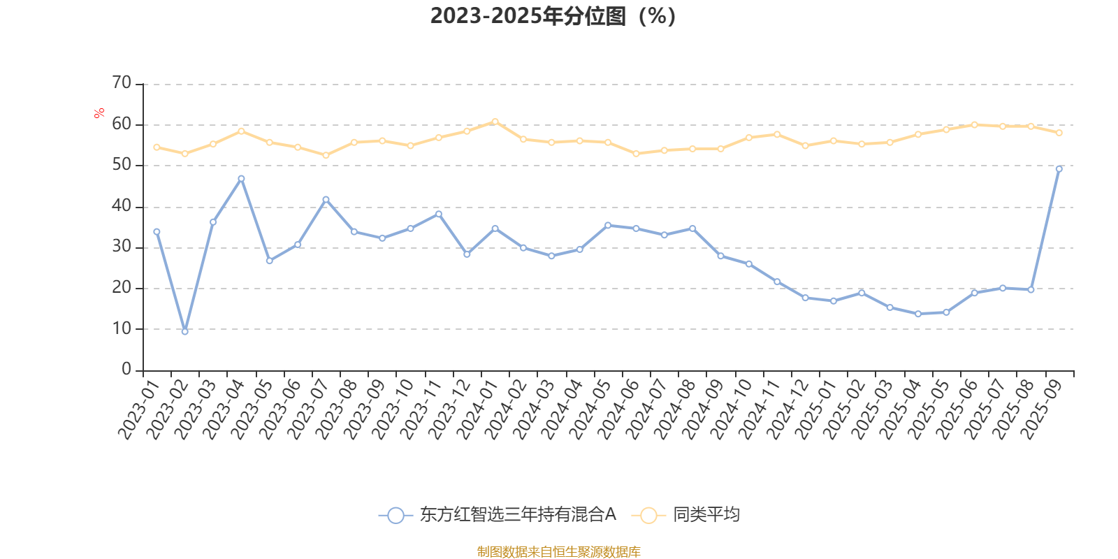 截至10月28日,东方红智选三年持有混合A近三个月复权单位净值增长率为29.64%,位于同类可比基金36/265;近半年复权单位净值增长率为47.87%,位于同类可比基金41/265;近一年复权单位净值增长率为31.77%,位于同类可比基金99/265;近三年复权单位净值增长率为20.09%,位于同类可比基金131/253。