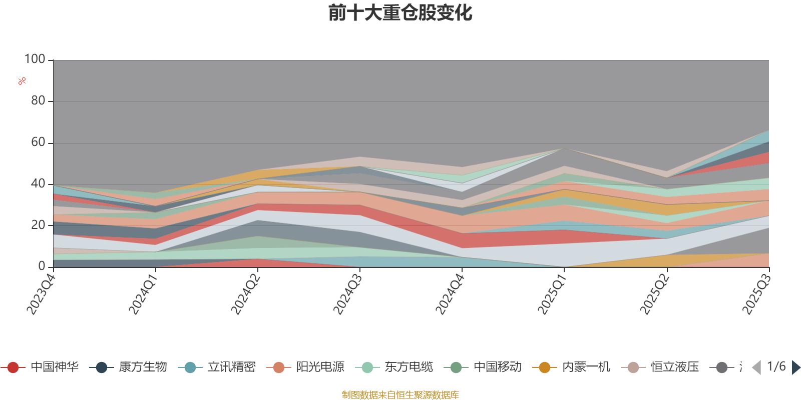 截至2025年三季度末,基金十大重仓股分别是海博思创、宁德时代、阿里巴巴-W、阳光电源、腾讯控股、中芯国际、博迁新材、亿纬锂能、沪电股份、工业富联。