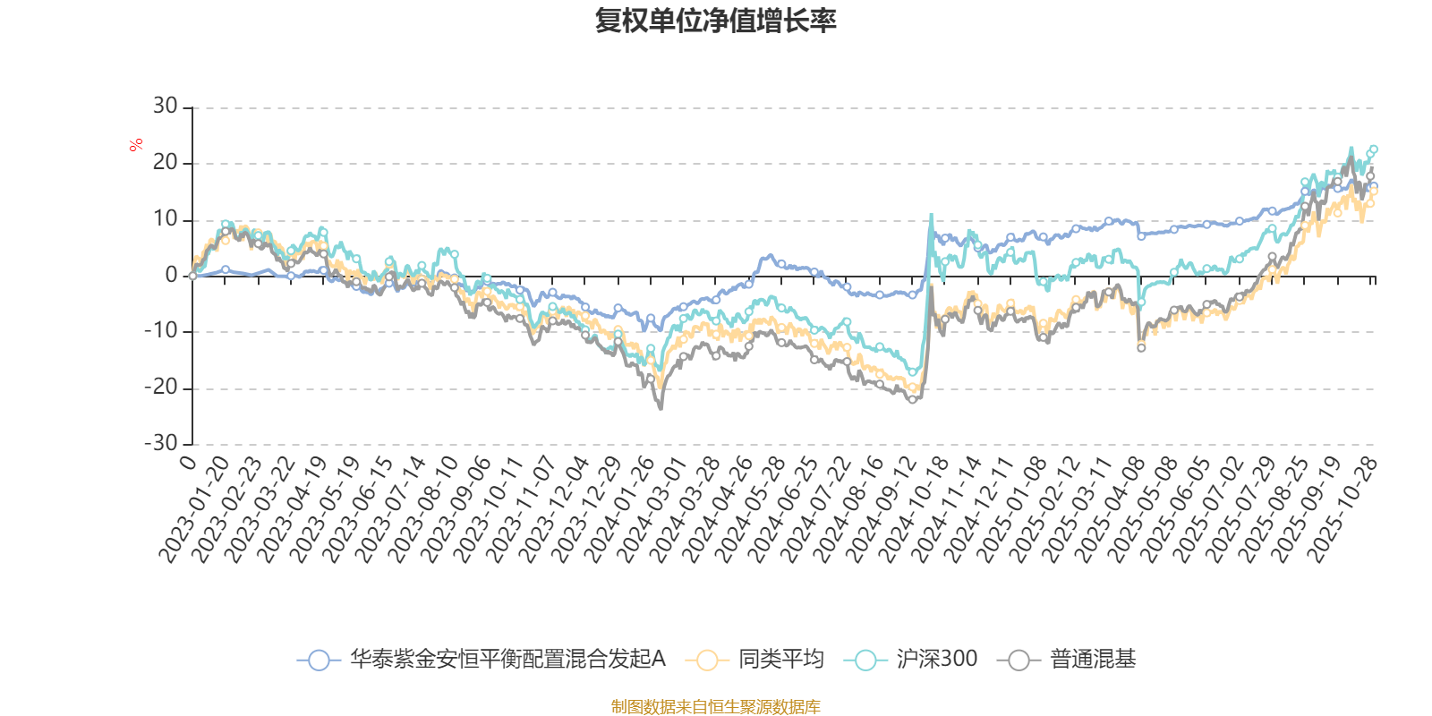 截至10月28日,华泰紫金安恒平衡配置混合发起A近三个月复权单位净值增长率为3.94%,位于同类可比基金112/134;近半年复权单位净值增长率为7.45%,位于同类可比基金120/134;近一年复权单位净值增长率为8.53%,位于同类可比基金102/130。