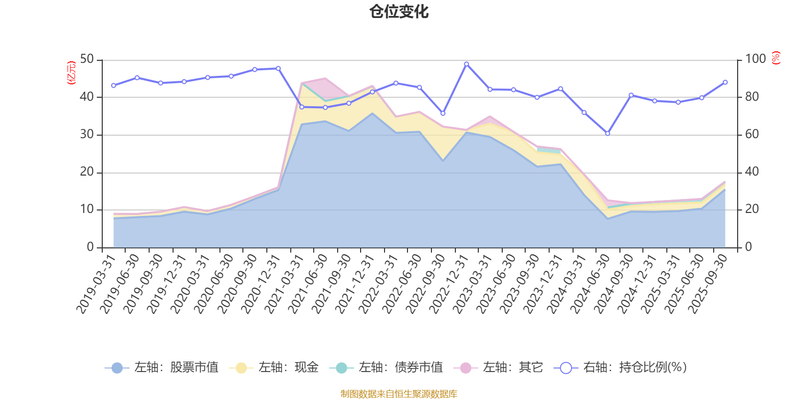 据定期报告数据统计,近三年平均股票仓位为80.69%,同类平均为72.35%。2022年末基金达到97.78%的最高仓位,2024年上半年末最低,为60.8%。