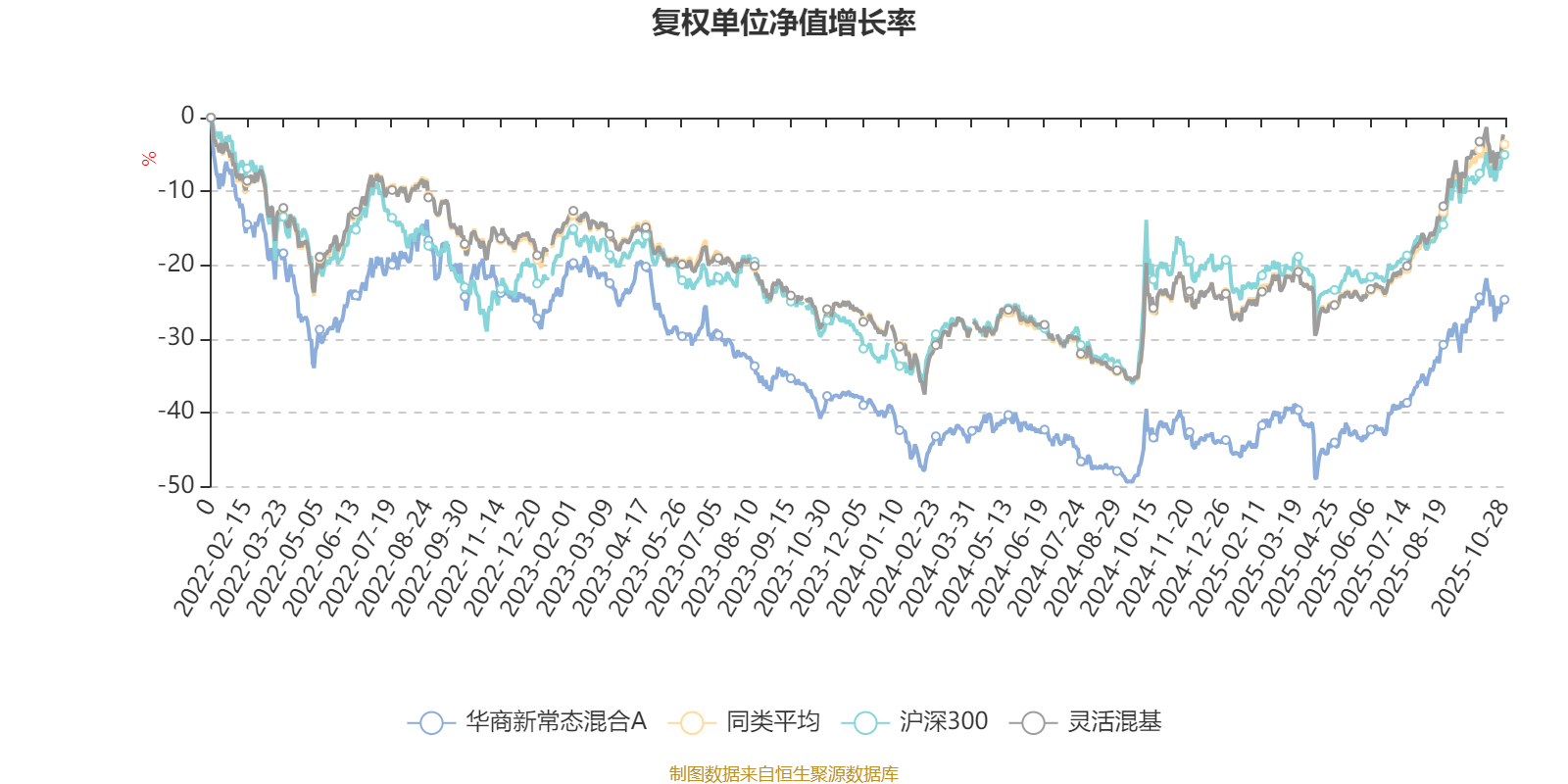 截至10月28日,华商新常态混合A近三个月复权单位净值增长率为16.79%,位于同类可比基金444/1287;近半年复权单位净值增长率为35.77%,位于同类可比基金359/1287;近一年复权单位净值增长率为28.49%,位于同类可比基金457/1287;近三年复权单位净值增长率为-3.50%,位于同类可比基金1073/1286。