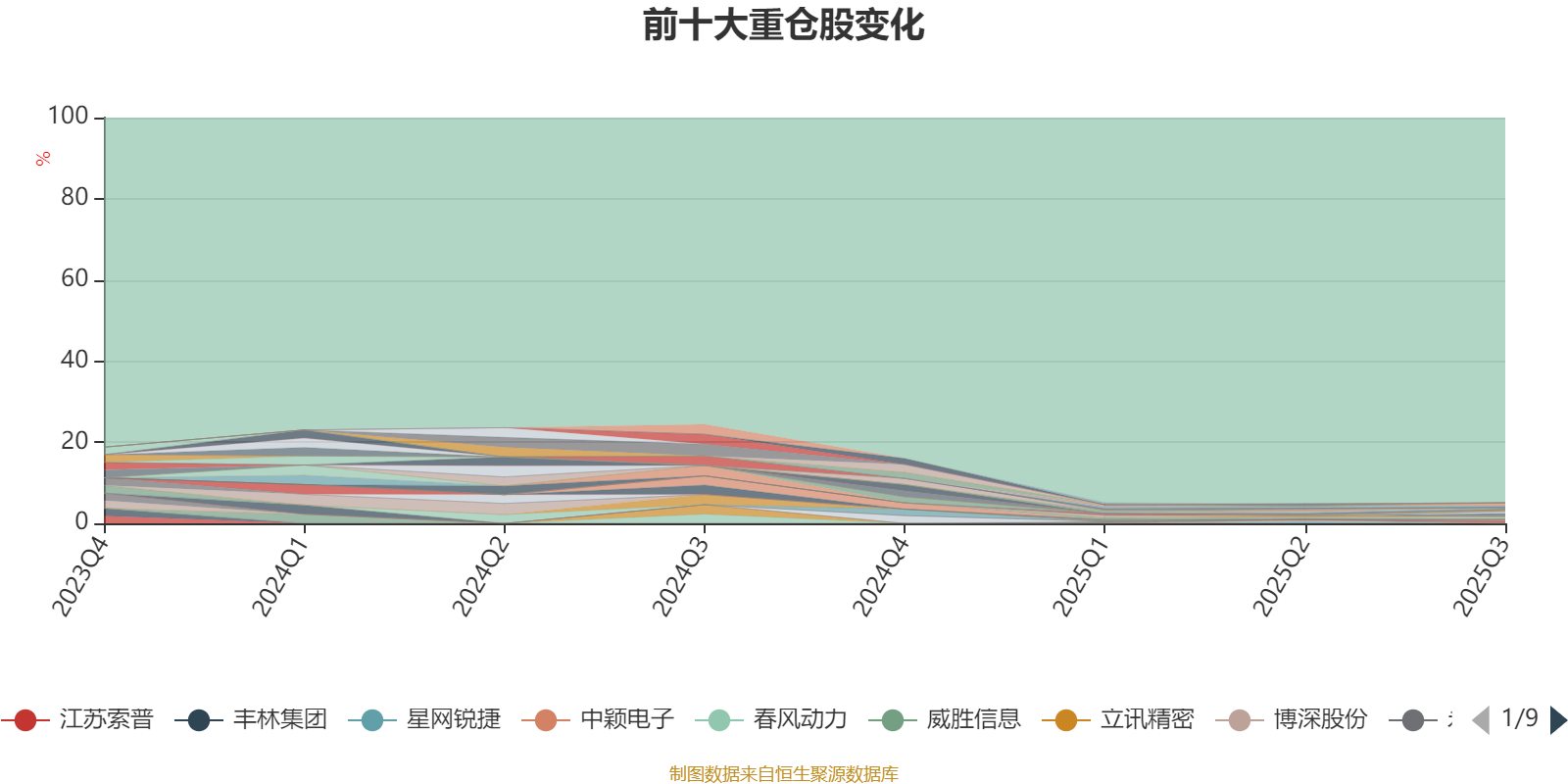 截至2025年三季度末,基金十大重仓股分别是聚辰股份、华虹公司、汇成股份、普冉股份、欧菲光、京仪装备、万润科技、电广传媒、润欣科技、法本信息。