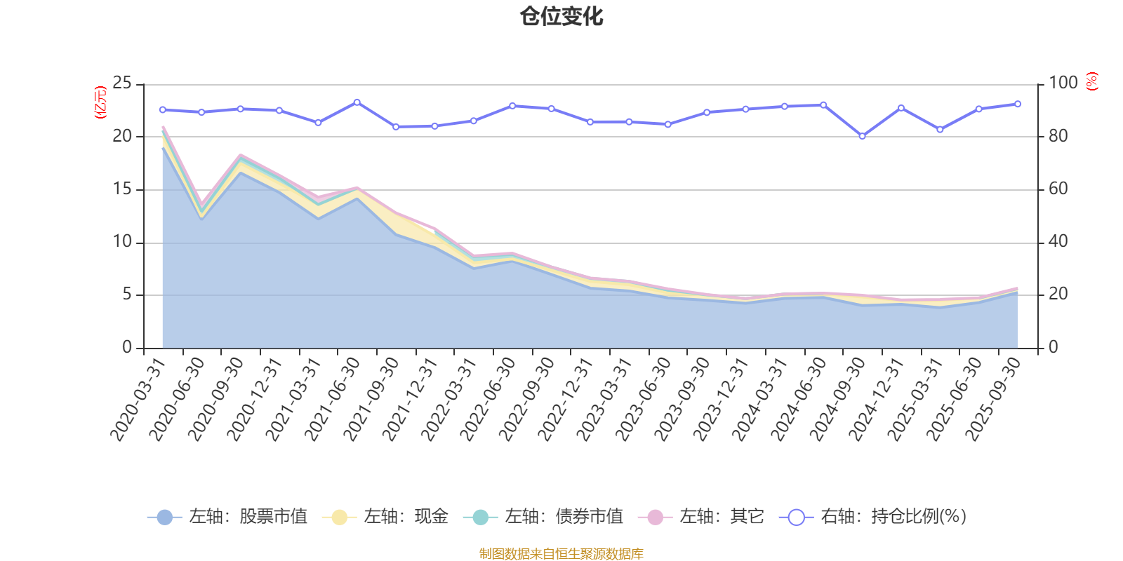 据定期报告数据统计,近三年平均股票仓位为88.08%,同类平均为88.27%。2021年上半年末基金达到93.13%的最高仓位,2024年三季度末最低,为80.33%。