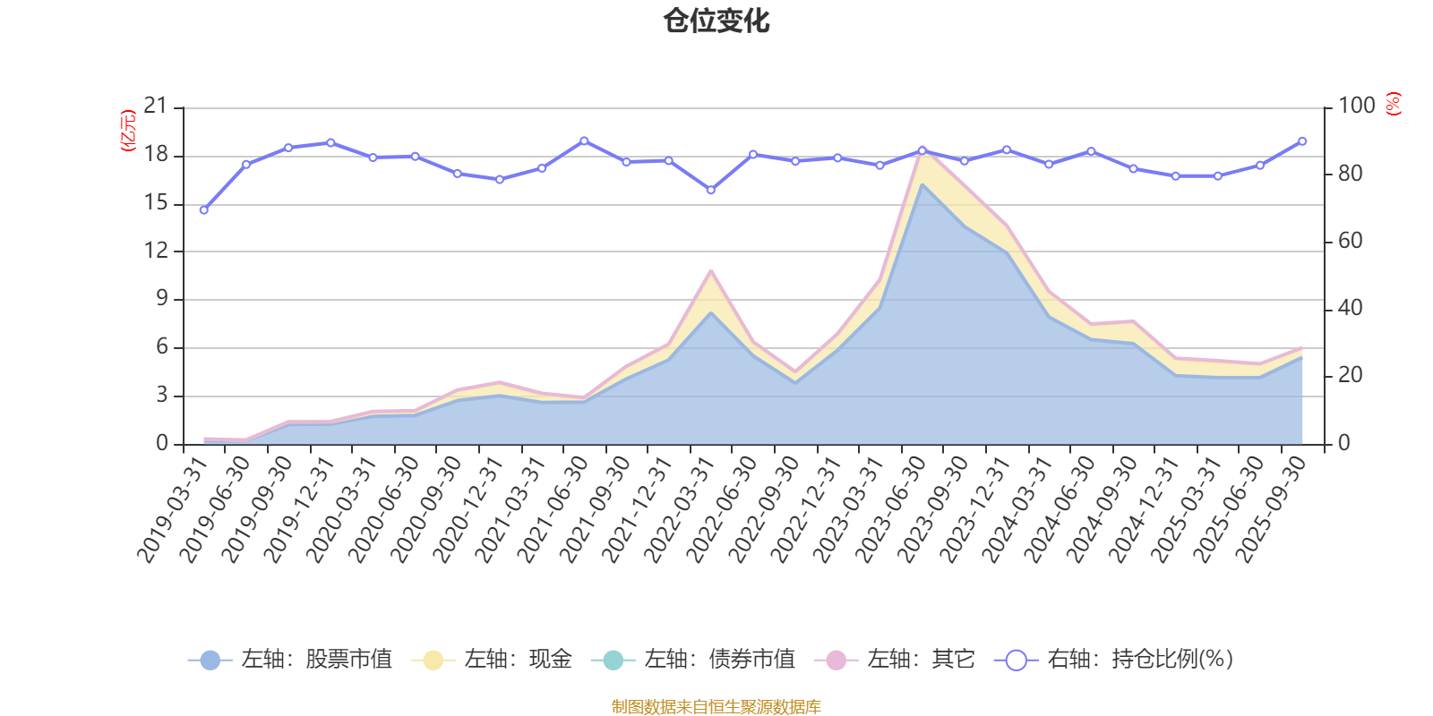 据定期报告数据统计,近三年平均股票仓位为84.21%,同类平均为72.35%。2021年上半年末基金达到90.06%的最高仓位,2019年一季度末最低,为69.55%。