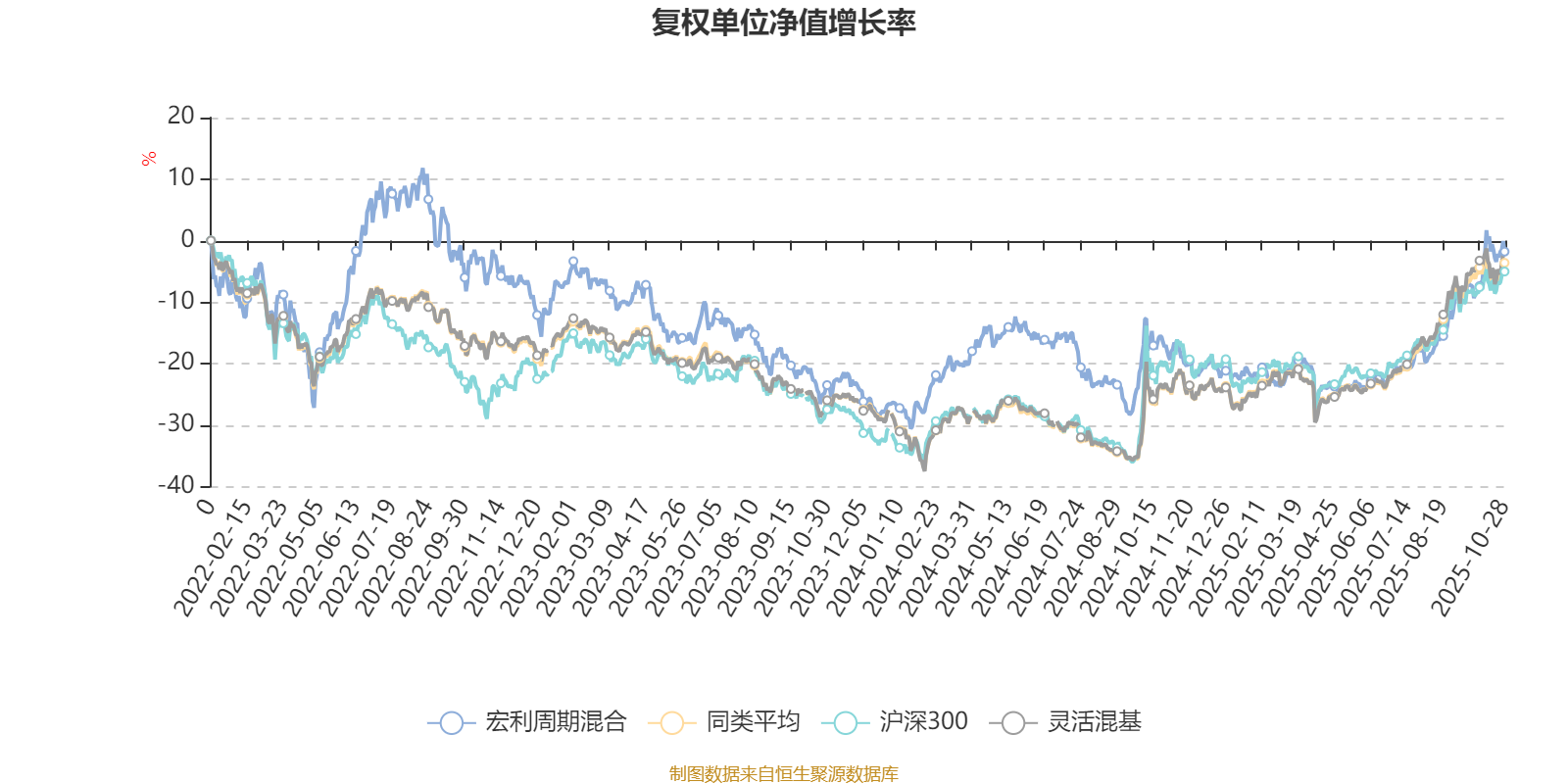 截至10月28日,宏利周期混合近三个月复权单位净值增长率为19.88%,位于同类可比基金366/1287;近半年复权单位净值增长率为29.33%,位于同类可比基金497/1287;近一年复权单位净值增长率为18.34%,位于同类可比基金714/1287;近三年复权单位净值增长率为5.45%,位于同类可比基金906/1286。