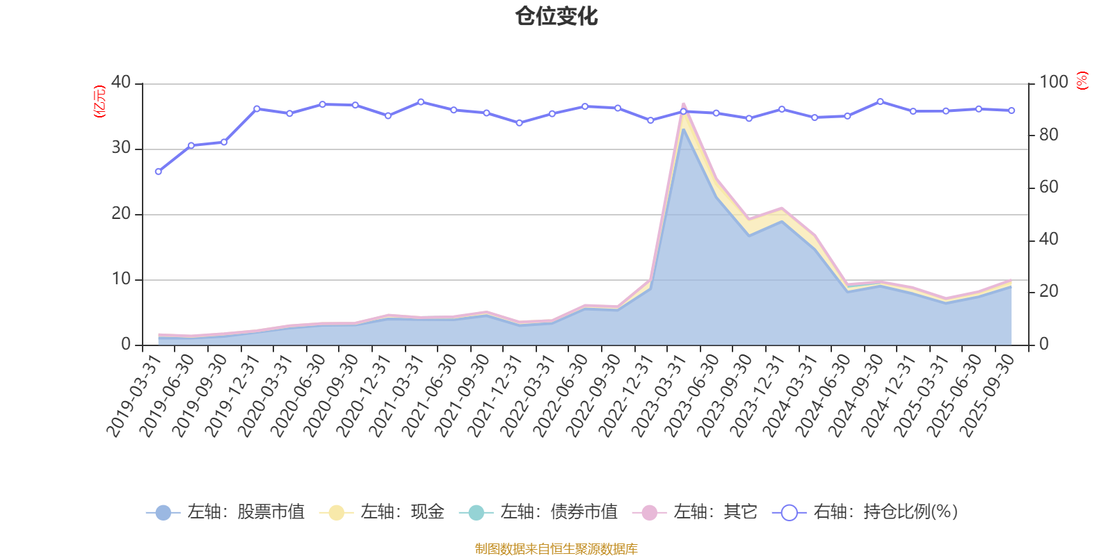据定期报告数据统计,近三年平均股票仓位为88.91%,同类平均为72.35%。2024年三季度末基金达到93.07%的最高仓位,2019年一季度末最低,为66.32%。