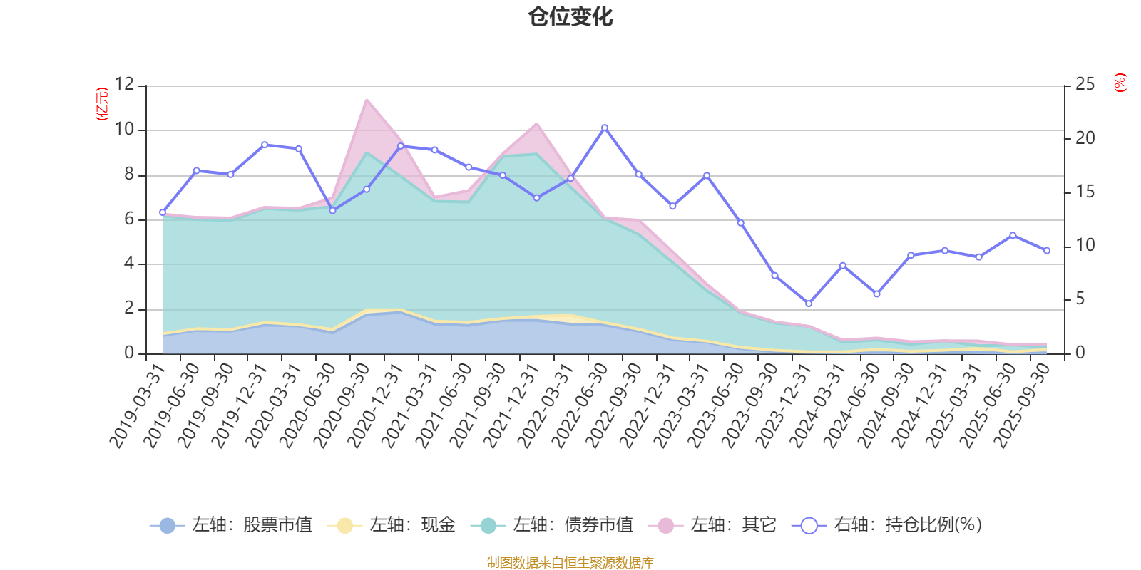 据定期报告数据统计,近三年平均股票仓位为9.74%,同类平均为72.35%。2022年上半年末基金达到21.07%的最高仓位,2023年末最低,为4.68%。