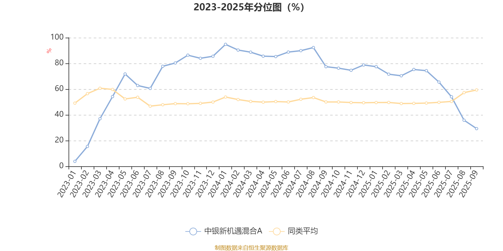 通过所选区间该基金净值增长率分位图,可以观察该基金与同类基金业绩比较情况。图为坐标原点到区间内某时点的净值增长率在同类基金中的分位数。