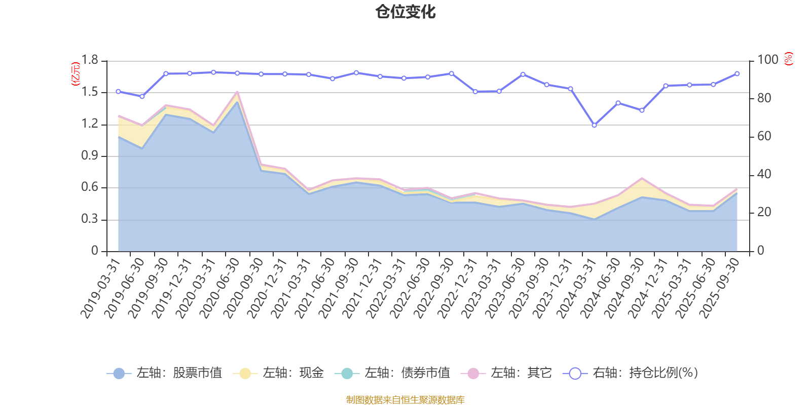 据定期报告数据统计,近三年平均股票仓位为83.87%,同类平均为86.77%。2020年一季度末基金达到93.94%的最高仓位,2024年一季度末最低,为66.18%。