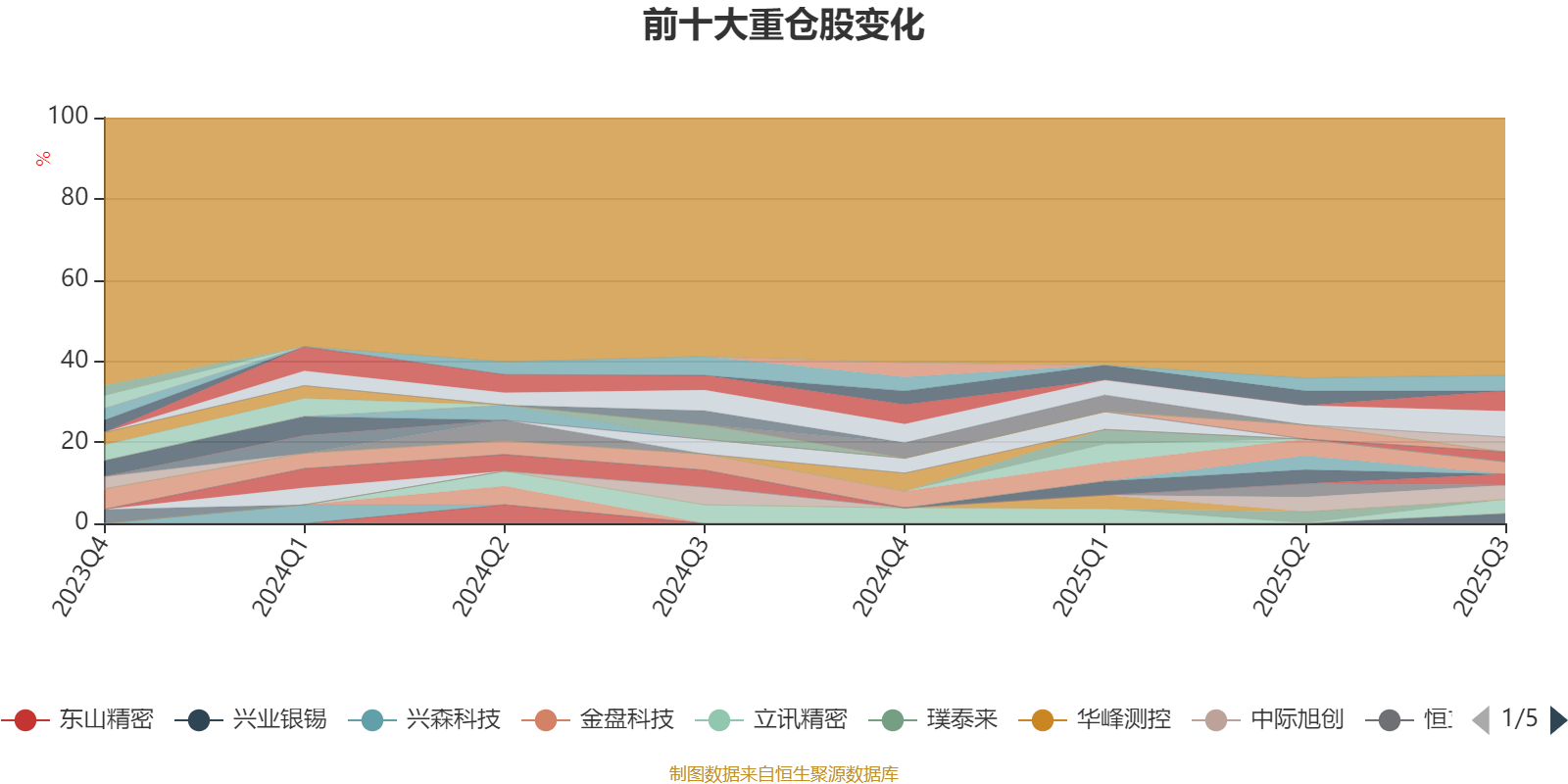 截至2025年三季度末,基金十大重仓股分别是沪电股份、工业富联、新易盛、源杰科技、中际旭创、立讯精密、北方华创、紫金矿业、寒武纪、兴业银锡。