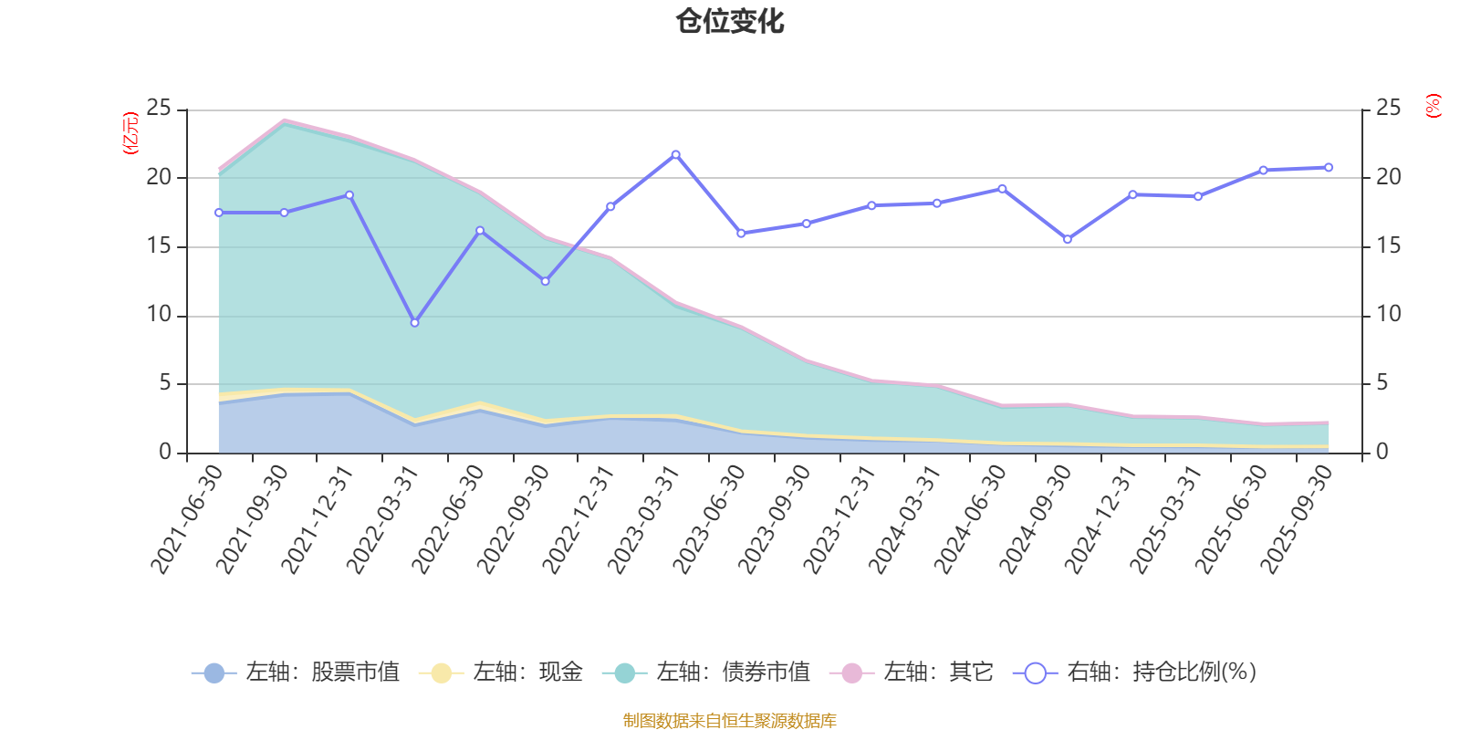 基金管理人在三季报中表示,报告期内,债券方面,组合根据市场波动积极调整久期,重点配置在中高等级信用债券,适度参与利率债券的交易。组合股票仓位持续提升,转债仓位持续降低。股票方面,组合积极把握市场结构性机会,增加了成长性资产的配置,重点布局于供给受限上游资源、具备全球竞争力的高端制造出海和 AI 科技浪潮带来的投资机会。