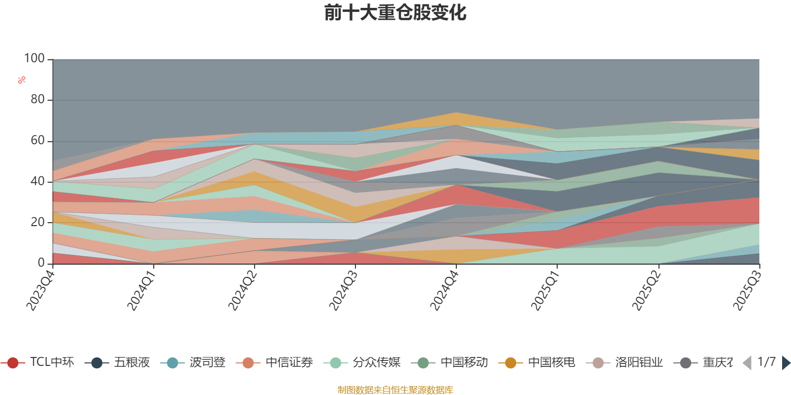 该基金持股集中度较高。截至2025年三季度末,基金十大重仓股分别是腾讯控股、分众传媒、海尔智家、美的集团、晶苑国际、阿里巴巴-W、快手-W、五粮液、统一企业中国、波司登。
