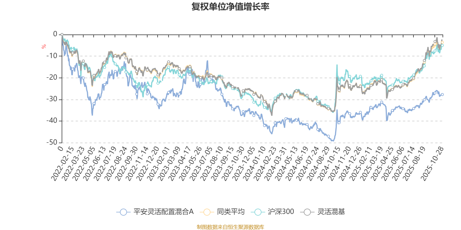 截至10月28日,平安灵活配置混合A近三个月复权单位净值增长率为7.95%,位于同类可比基金800/1287;近半年复权单位净值增长率为12.19%,位于同类可比基金977/1287;近一年复权单位净值增长率为14.88%,位于同类可比基金799/1287;近三年复权单位净值增长率为-4.11%,位于同类可比基金1080/1286。