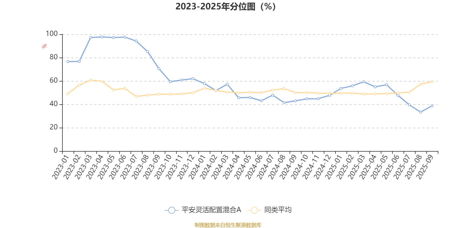 通过所选区间该基金净值增长率分位图,可以观察该基金与同类基金业绩比较情况。图为坐标原点到区间内某时点的净值增长率在同类基金中的分位数。