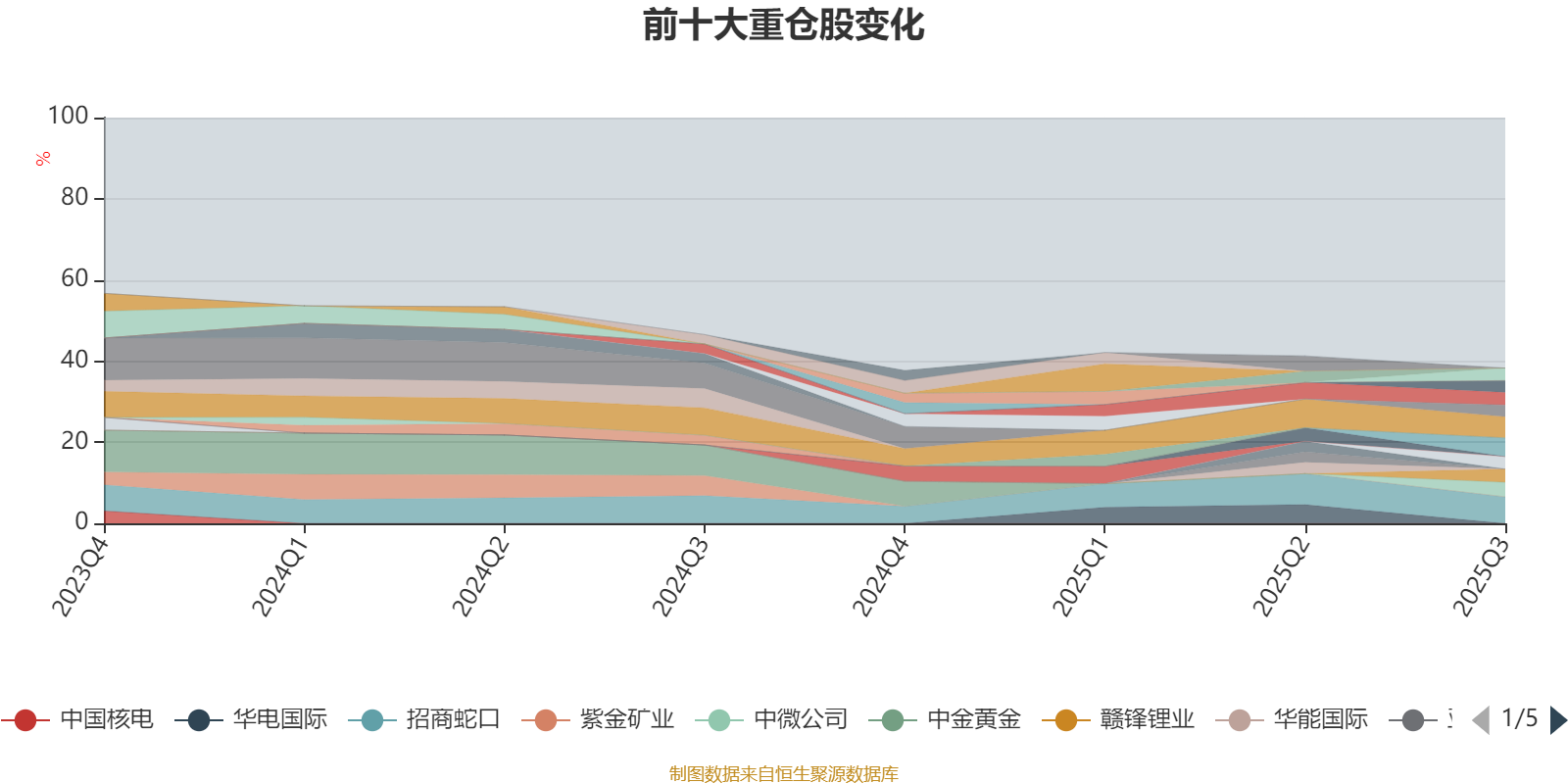 截至2025年三季度末,基金十大重仓股分别是招商蛇口、保利发展、寒武纪、中微公司、赣锋锂业、滨江集团、山东黄金、中国海油、隆基绿能、山金国际。