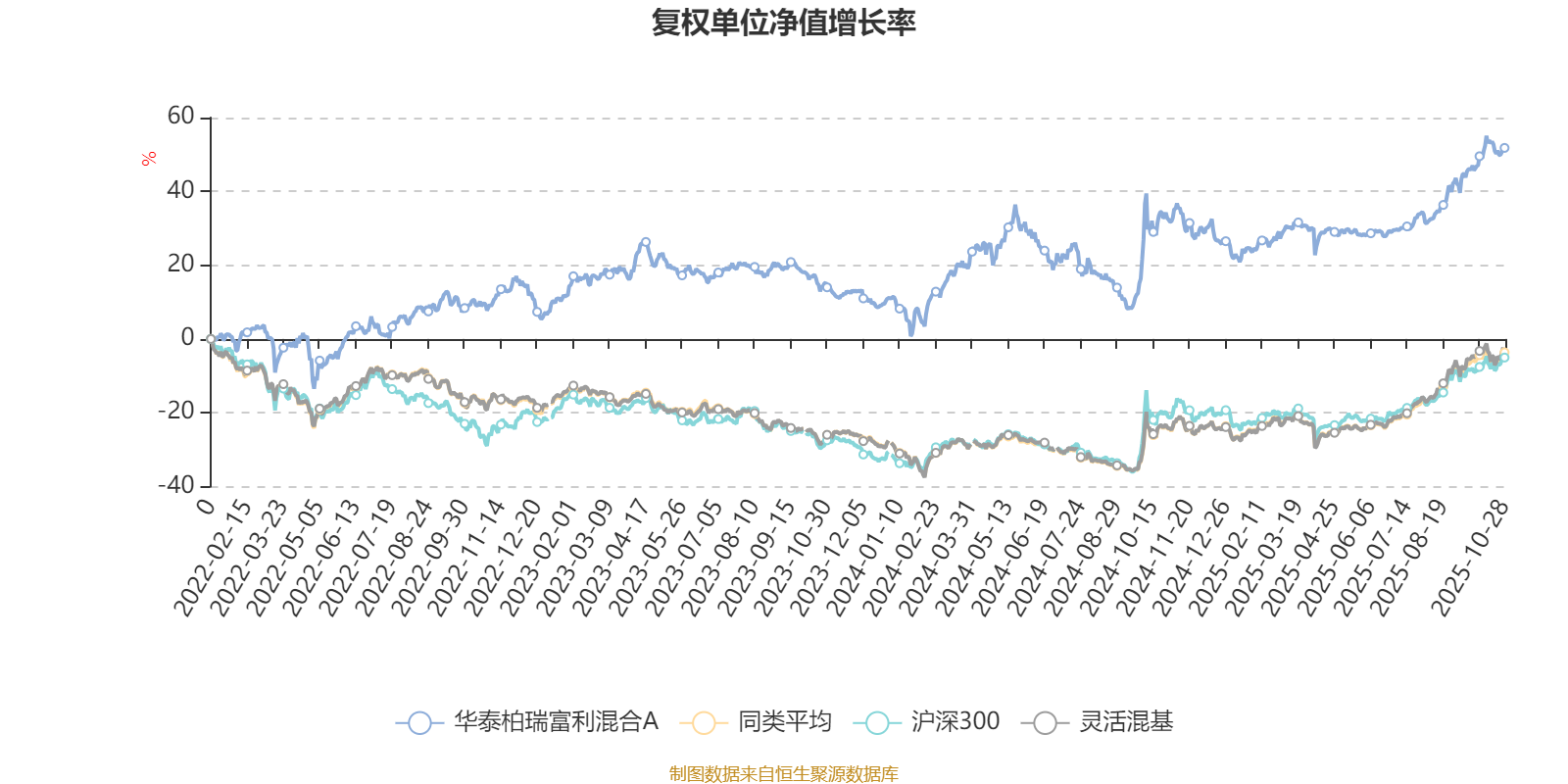 截至10月28日,华泰柏瑞富利混合A近三个月复权单位净值增长率为13.21%,位于同类可比基金568/1287;近半年复权单位净值增长率为18.19%,位于同类可比基金815/1287;近一年复权单位净值增长率为13.05%,位于同类可比基金839/1287;近三年复权单位净值增长率为38.87%,位于同类可比基金258/1286。