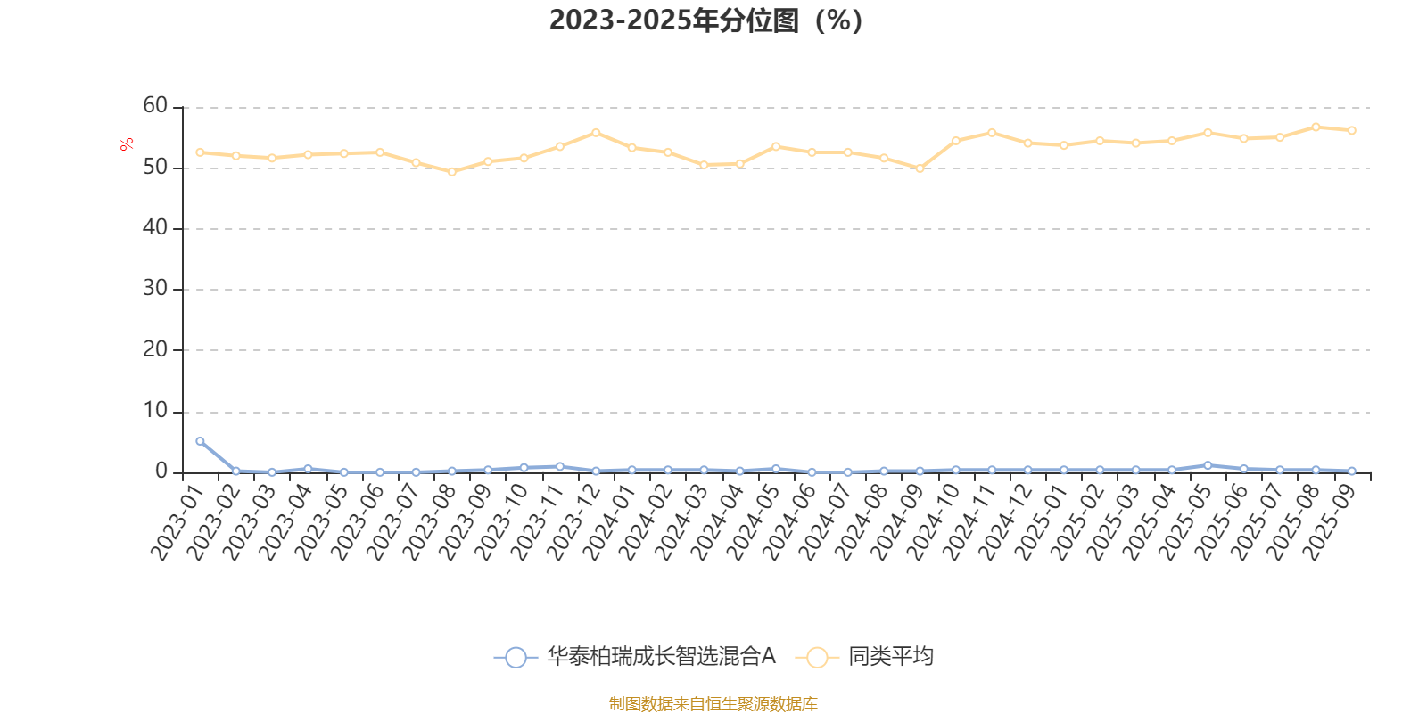 通过所选区间该基金净值增长率分位图,可以观察该基金与同类基金业绩比较情况。图为坐标原点到区间内某时点的净值增长率在同类基金中的分位数。