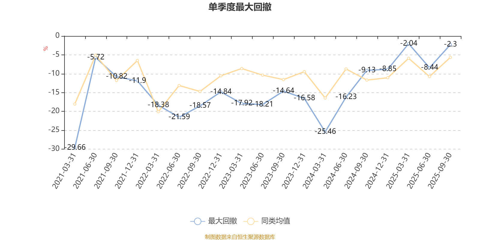 截至9月30日,基金近三年夏普比率为-0.1859,位于同类可比基金515/518。