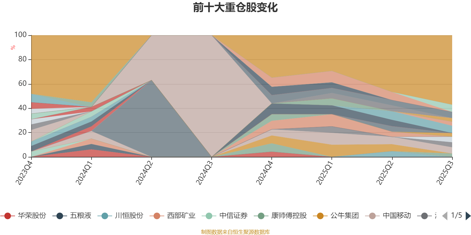 截至2025年三季度末,基金十大重仓股分别是新宙邦、伊利股份、中国移动、三一重工、腾讯控股、洛阳钼业、中国人寿、牧原股份、百胜中国、康师傅控股。