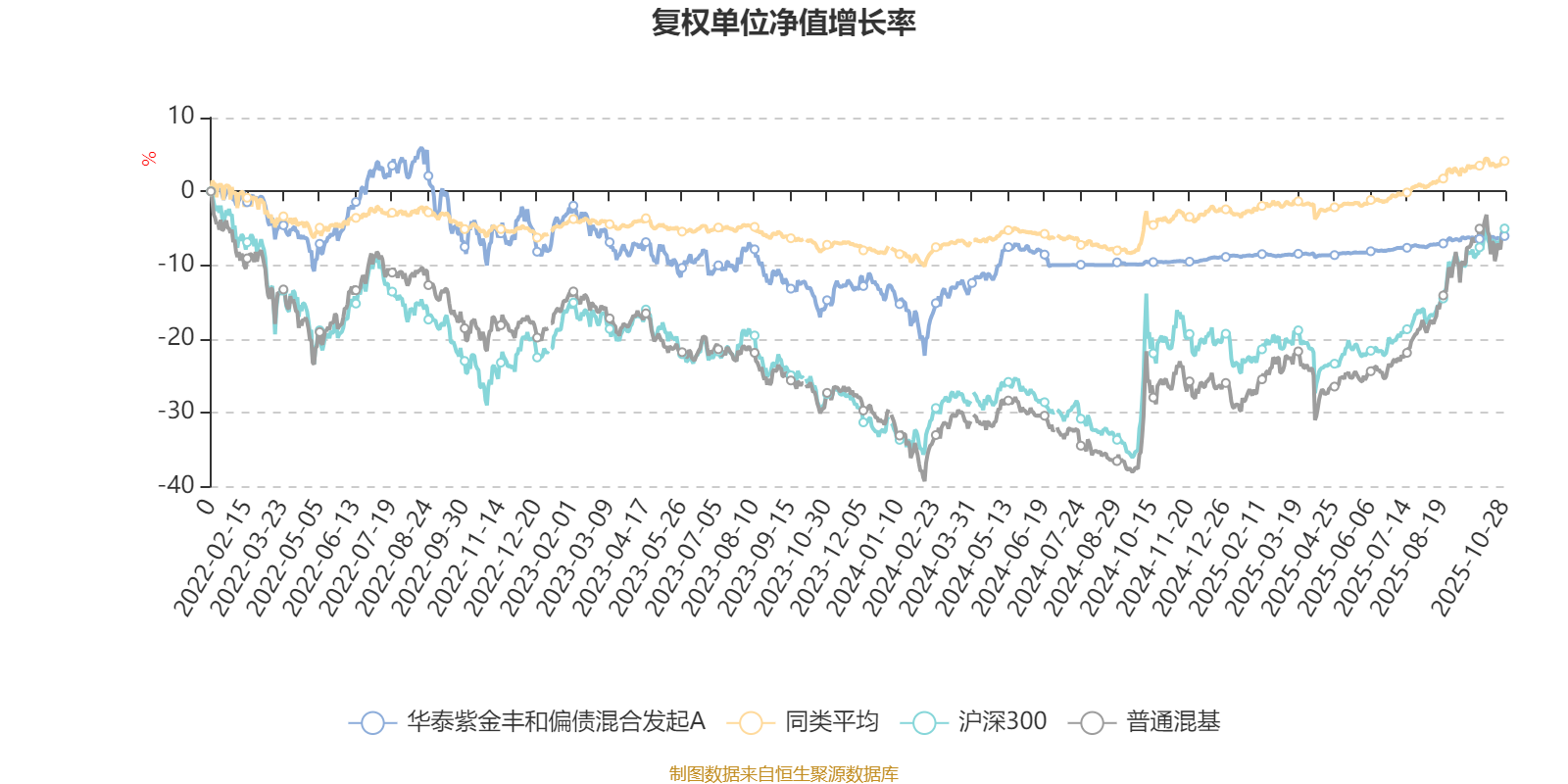 截至10月28日,华泰紫金丰和偏债混合发起A近三个月复权单位净值增长率为1.51%,位于同类可比基金424/629;近半年复权单位净值增长率为2.75%,位于同类可比基金524/629;近一年复权单位净值增长率为3.87%,位于同类可比基金518/623;近三年复权单位净值增长率为3.33%,位于同类可比基金494/557。