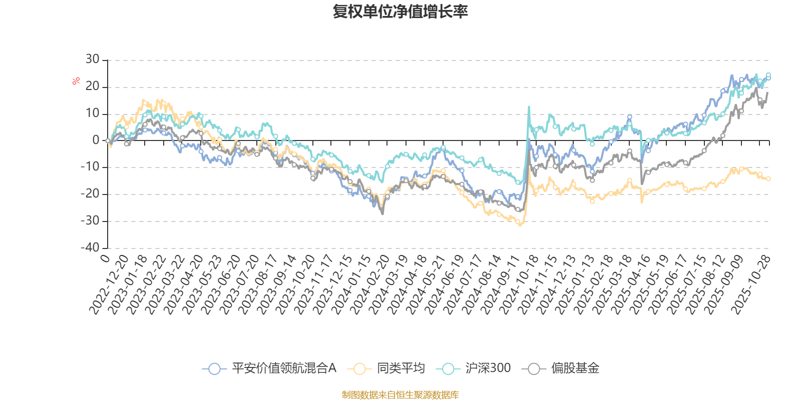 截至10月28日,平安价值领航混合A近三个月复权单位净值增长率为6.82%,位于同类可比基金10/85;近半年复权单位净值增长率为23.81%,位于同类可比基金2/85;近一年复权单位净值增长率为25.45%,位于同类可比基金2/82。