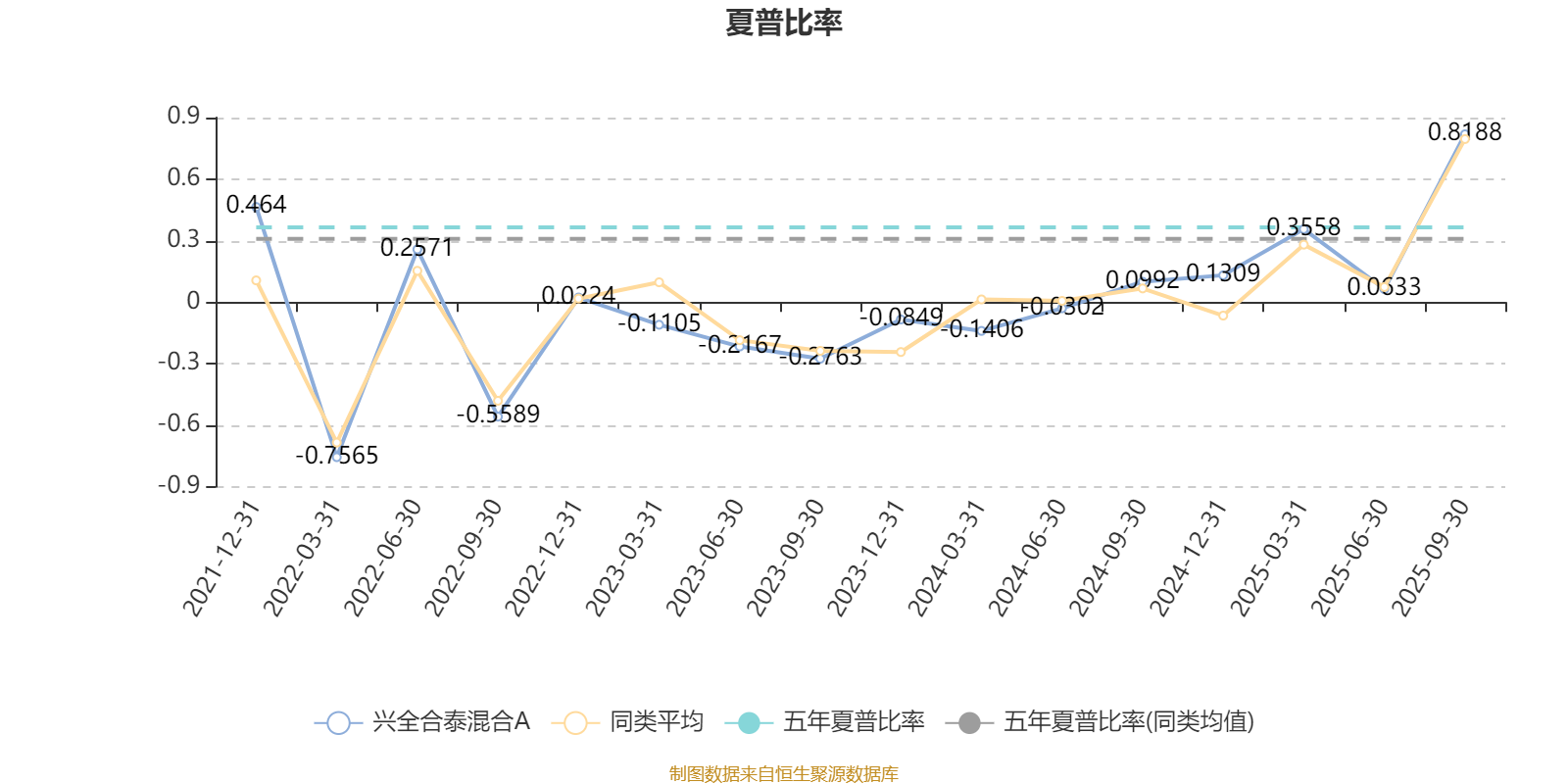 截至9月30日,基金近三年夏普比率为0.4958,位于同类可比基金84/125。