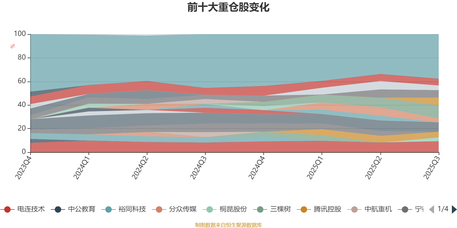 该基金持股集中度较高。截至2025年三季度末,基金十大重仓股分别是理想汽车-W、电连技术、鼎龙股份、阿里巴巴-W、华鲁恒升、科博达、腾讯控股、华友钴业、亿纬锂能、桐昆股份。